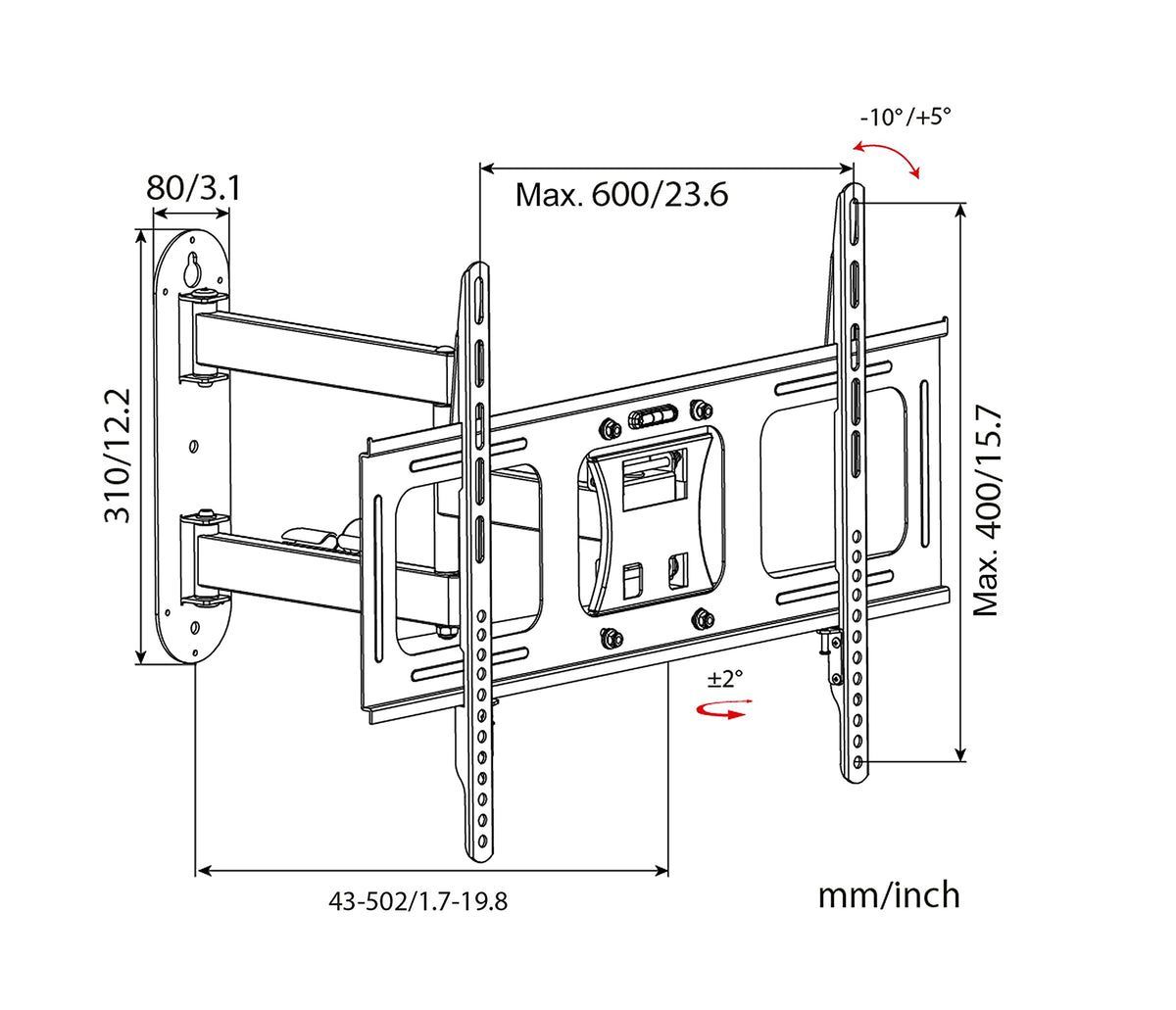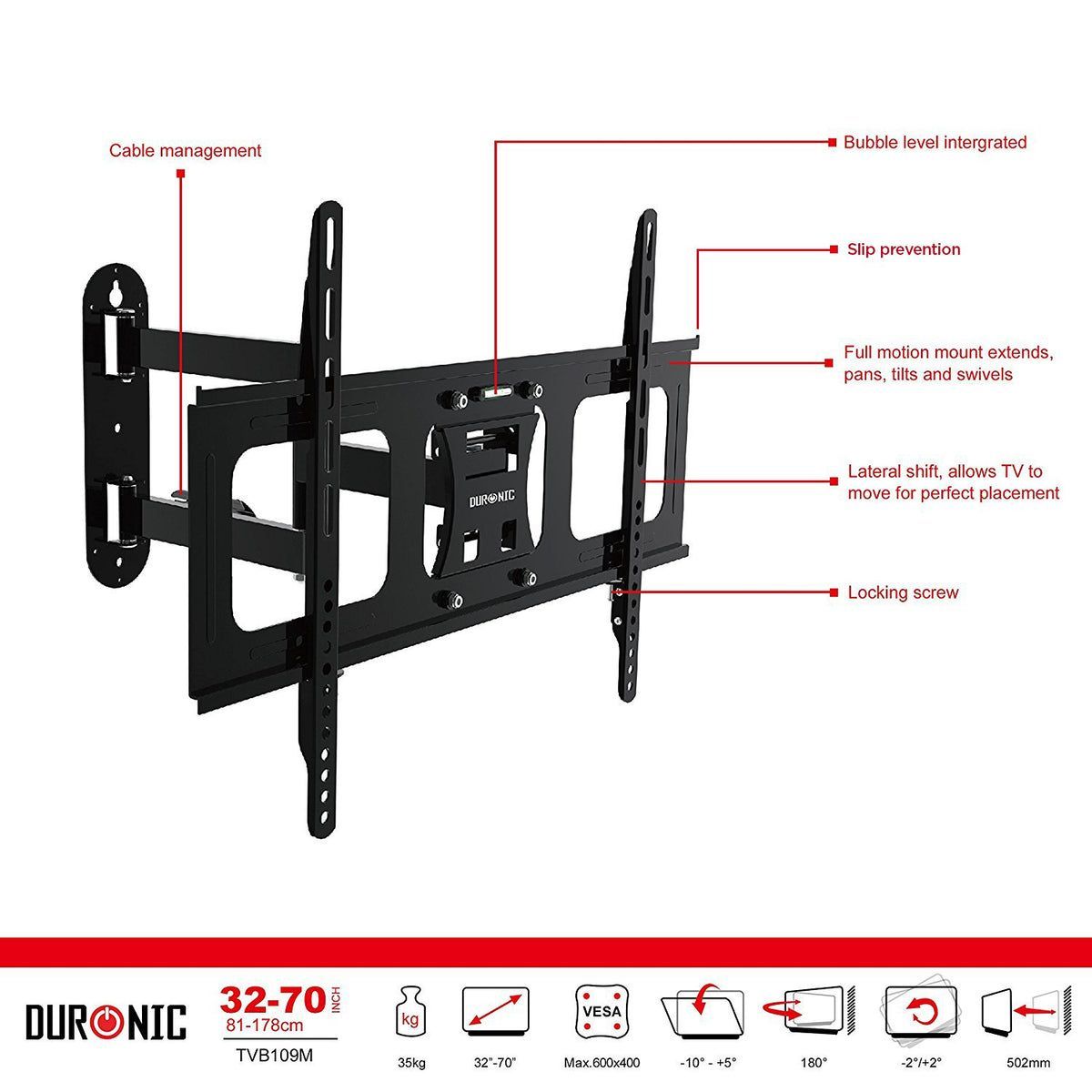 Duronic TVB109M Wandhalterung TV 70" Zoll 35kg VESA 600x400 neigbar schwenkbar