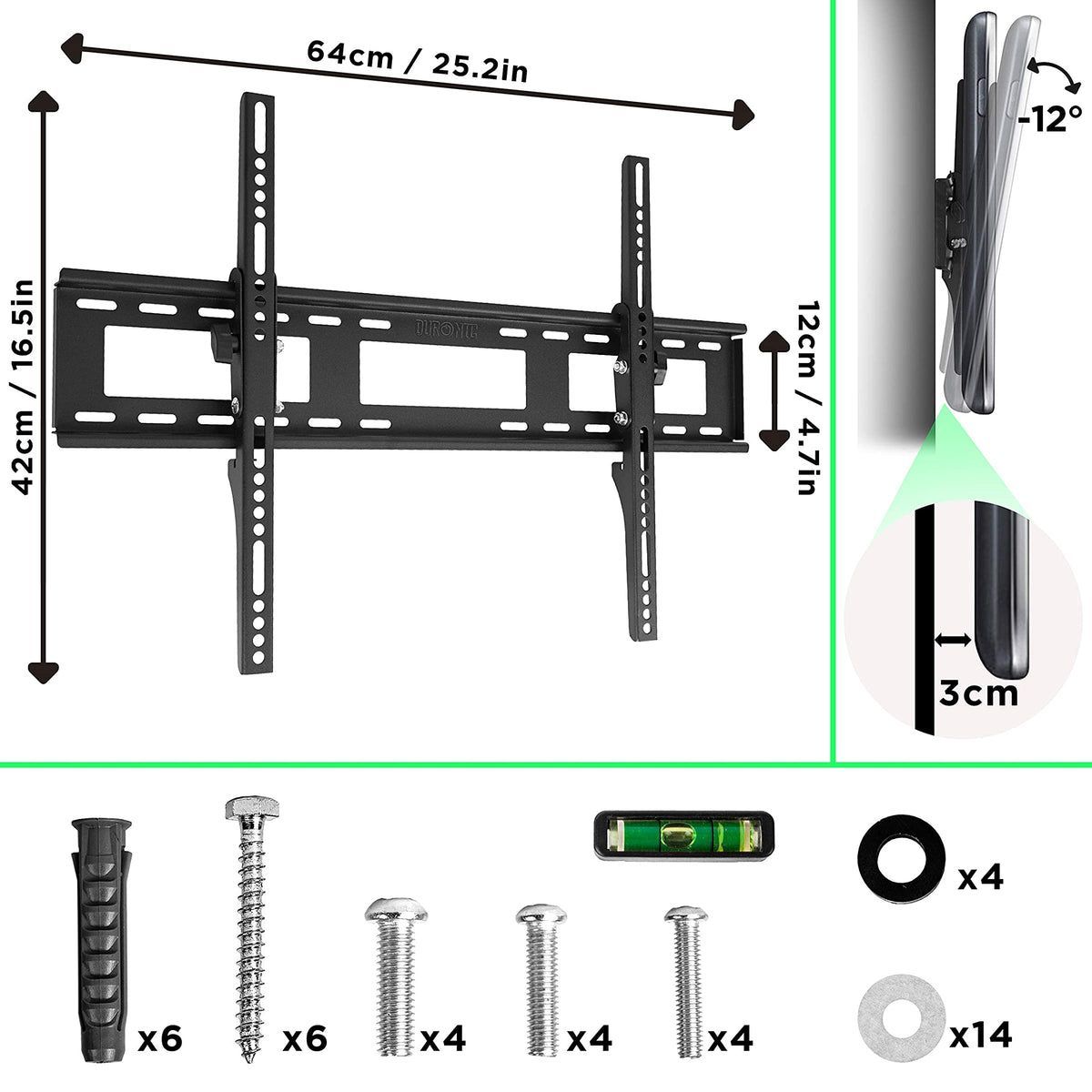 Duronic TVB123M Wandhalterung TV 60" Zoll 40kg VESA 600x400 neigbar LED OLED