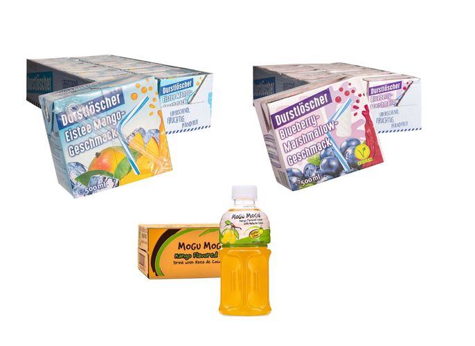 Durstlöscher Eistee Mango, Blueberry-Marshmallow à 12x500ml & Mogu Mango 6x320ml