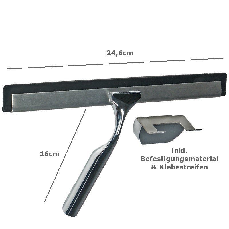 Duschabzieher inkl. Wandhaken, Zinkdruckguss verchromt, breiter Abstreifer 24,6cm