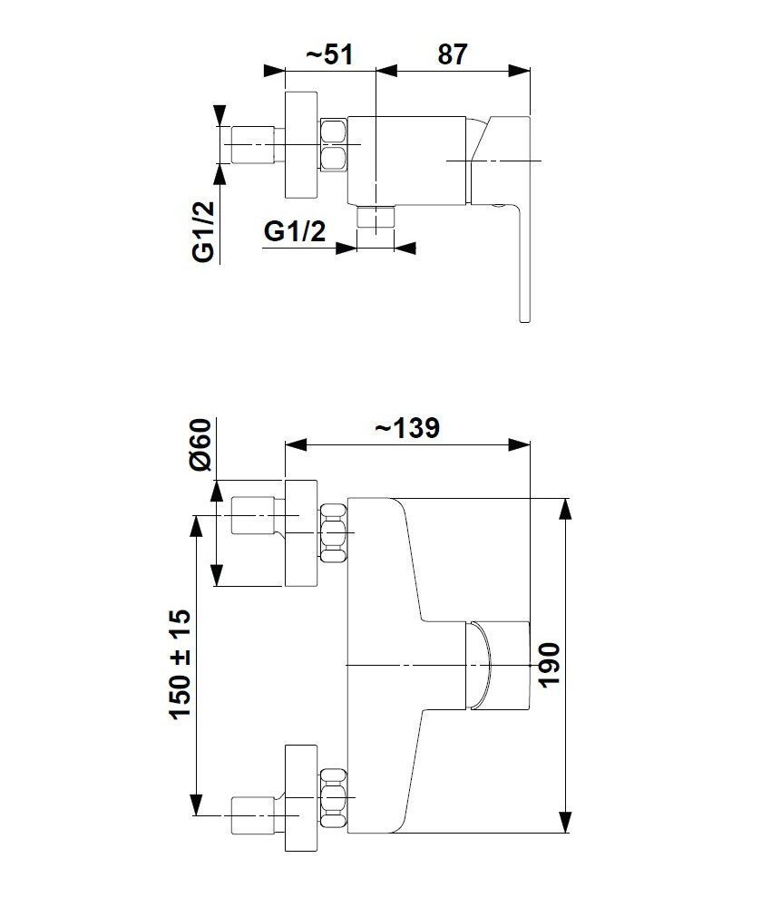 • Vigour one Einhand Einhebel AP Aufputz Brausebatterie verchromt