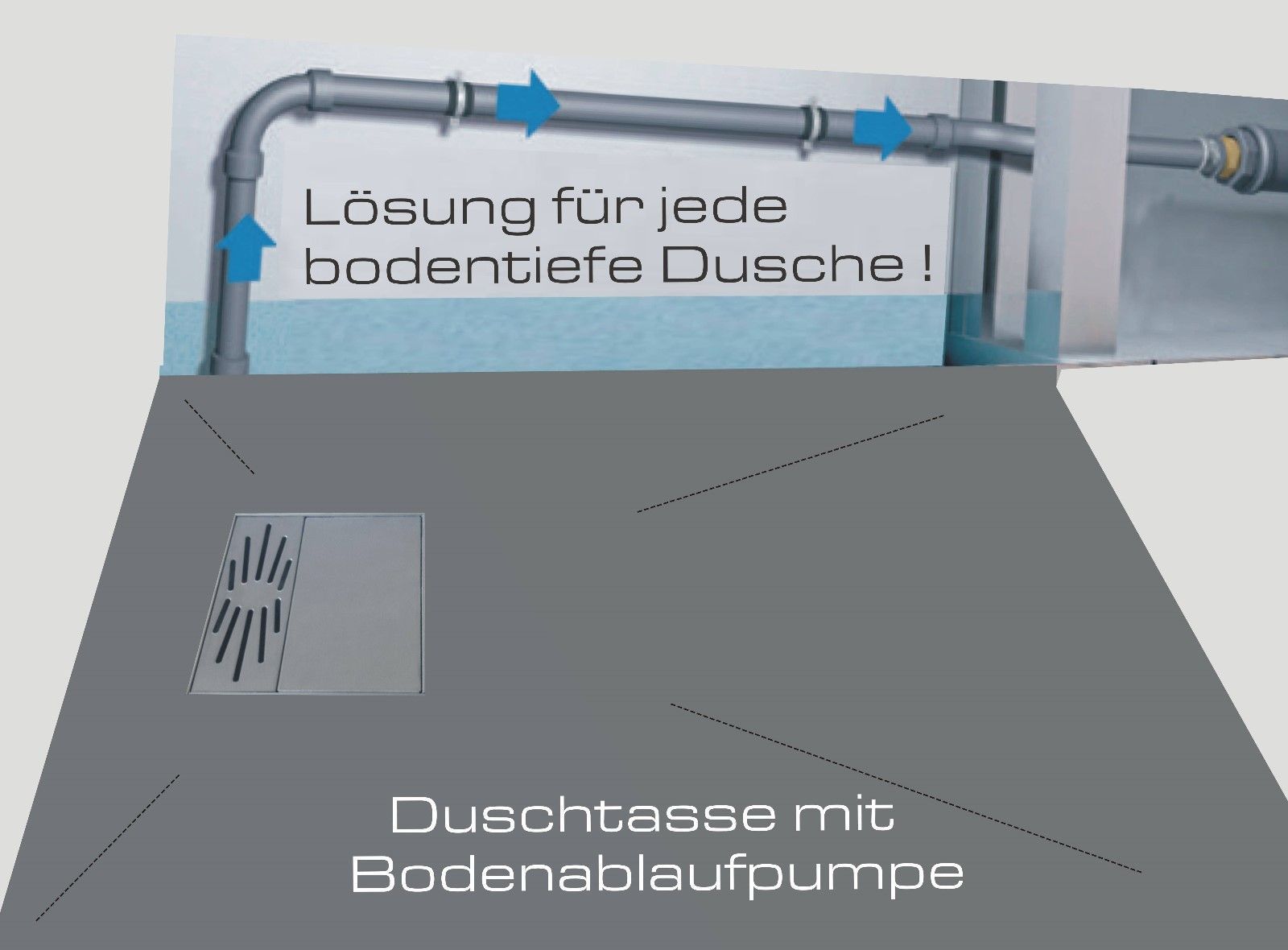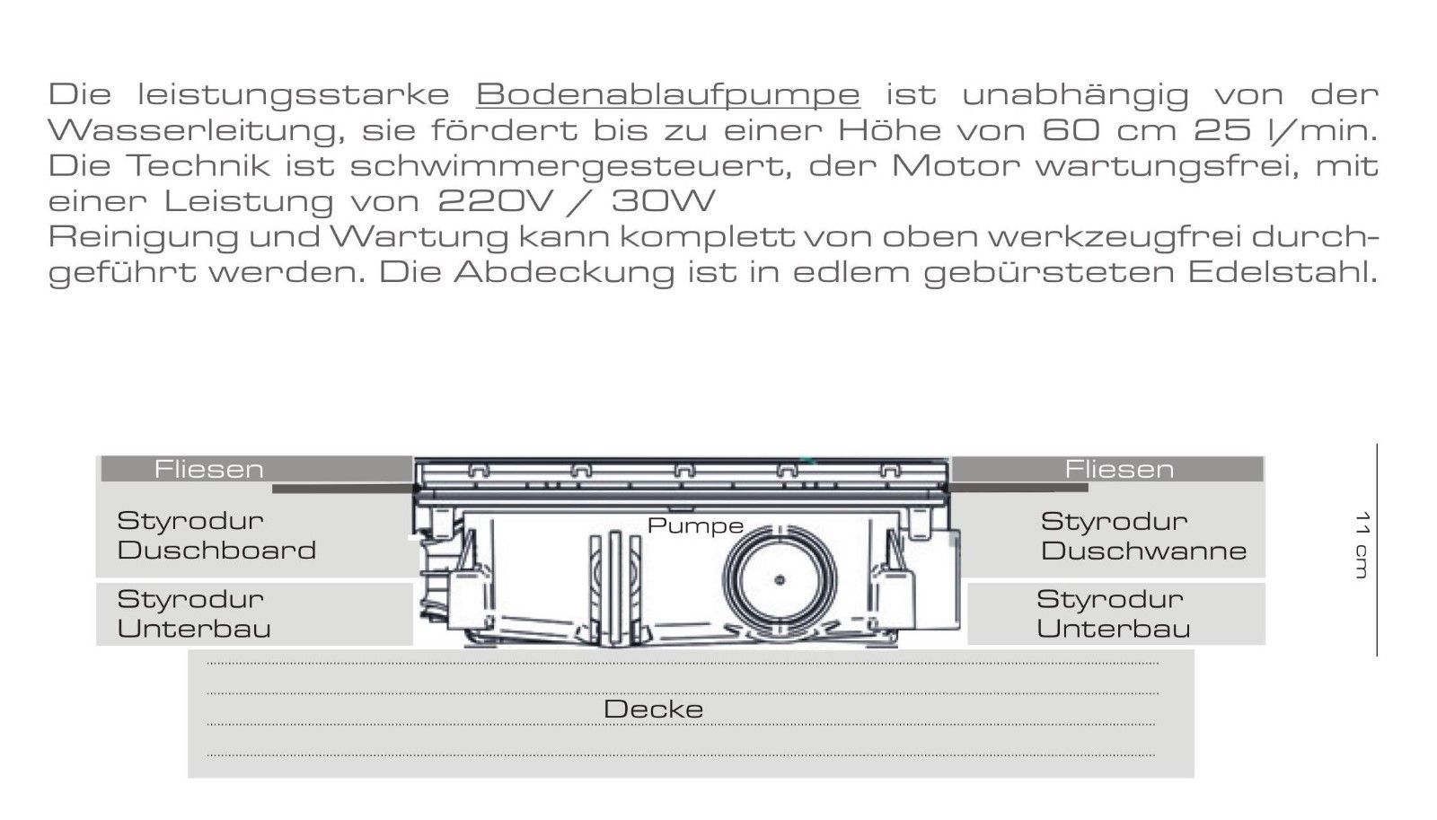 Duschboard flach mit Ablauf - Pumpe 120x90 Styrodur für eine bodentiefe Dusche