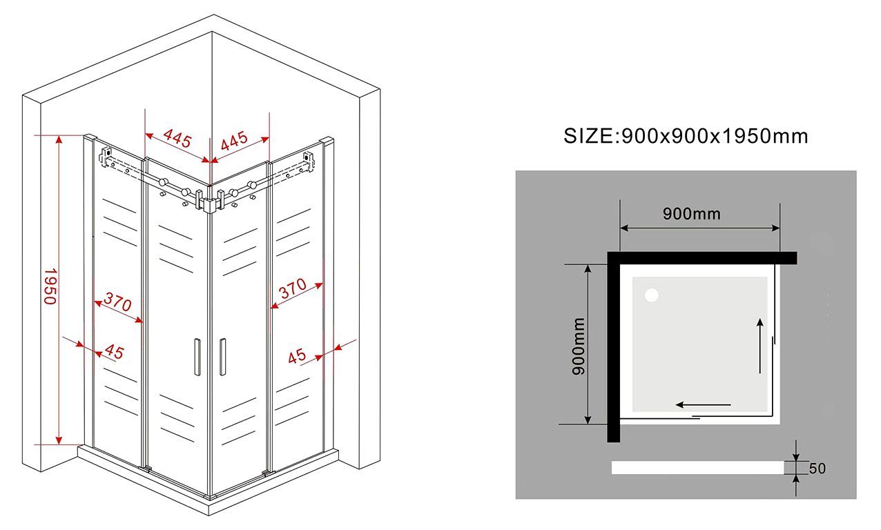 Duschkabine AREA 90 x 90 cm ohne Duschtasse