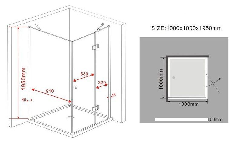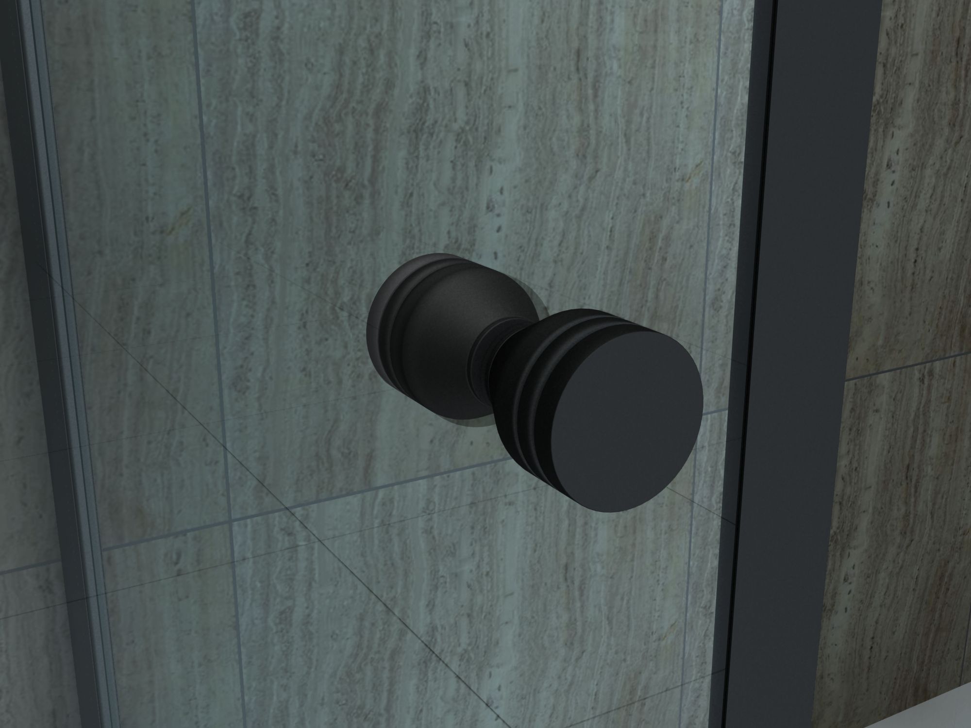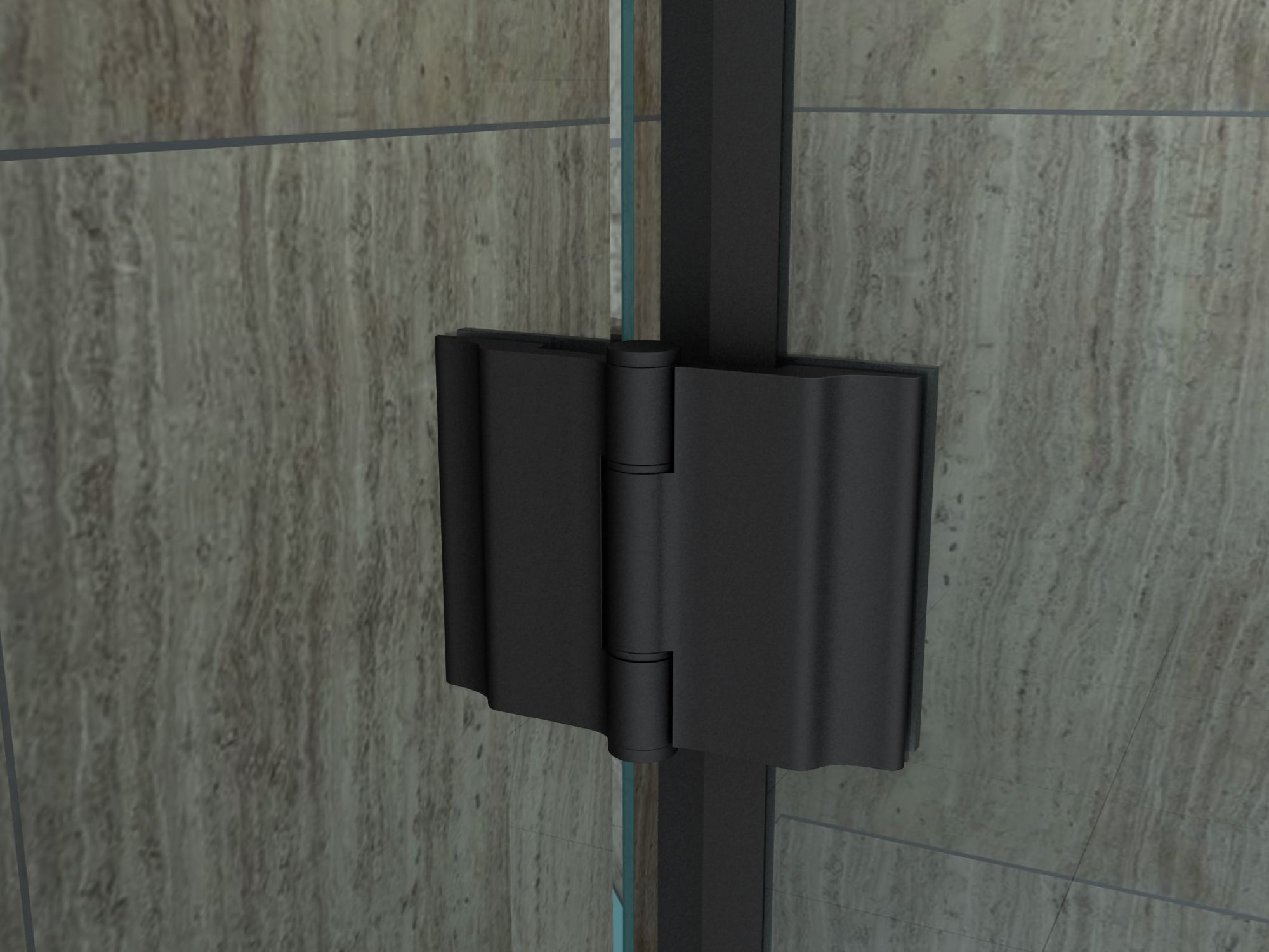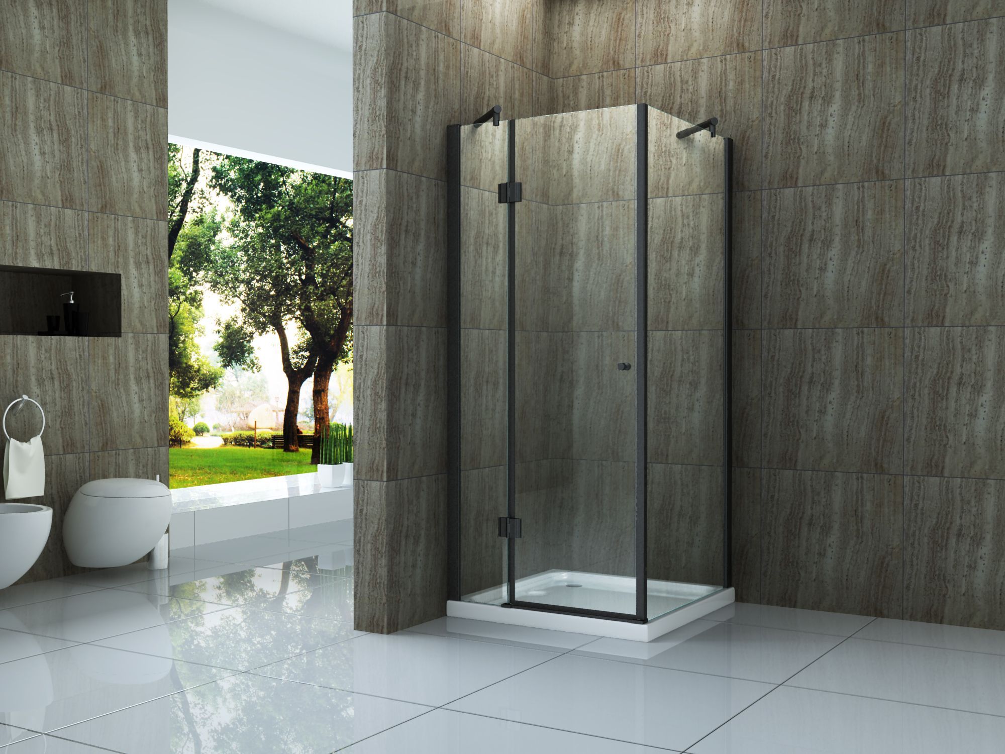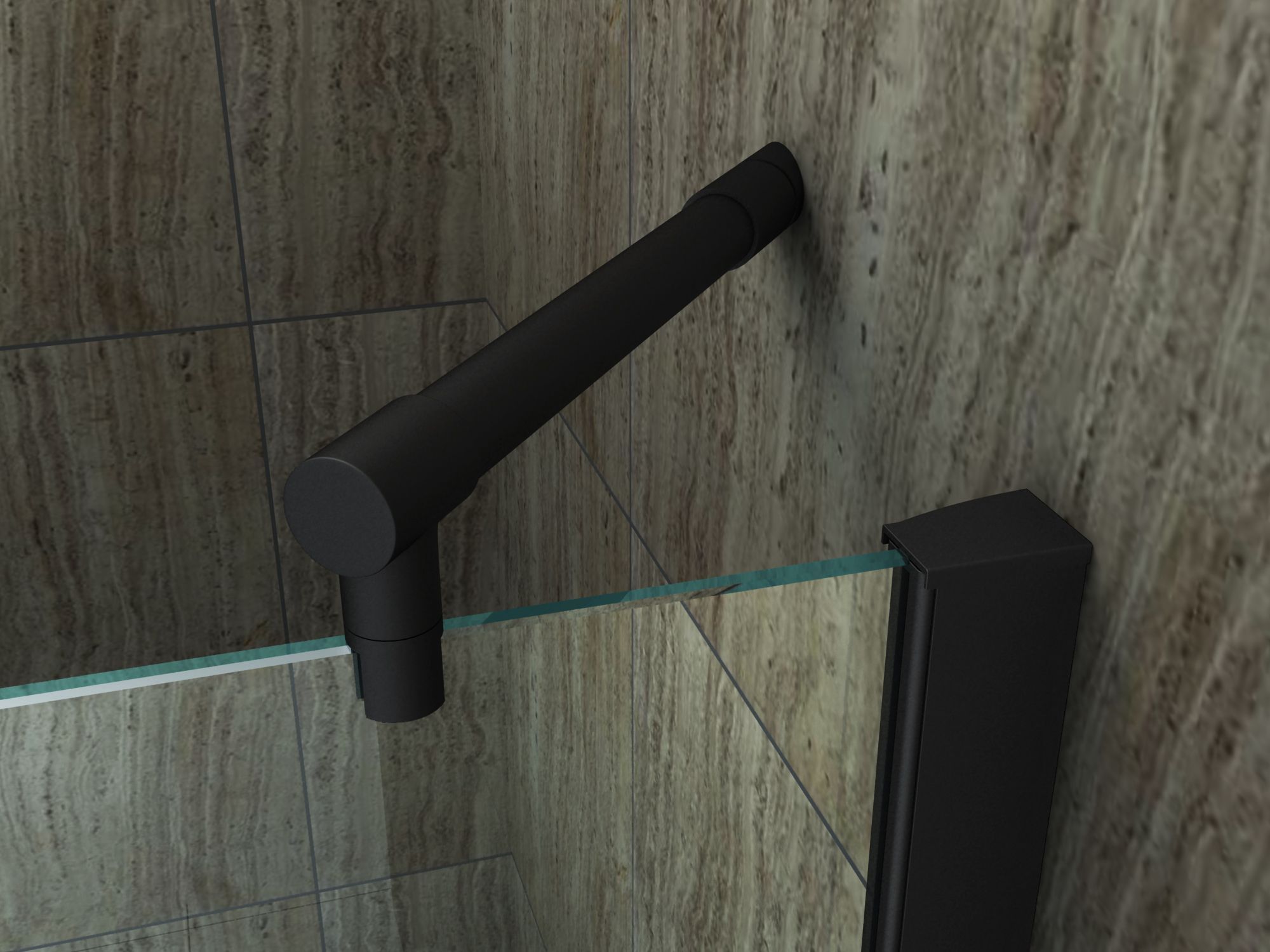 Glasscheiben aus 8 mm Sicherheitsglas (ESG) Easy-Clean Oberflächenbeschichtung hochwertige Aluminiumprofile matt schwarz lackiert rahmenloses Glas vollständige Verdeckung der Verschraubung bis zu 15 mm Wandausgleich Scharniere & Türgriff aus Messing, schwarz schwarze Magnetabdichtung für wasserdicht