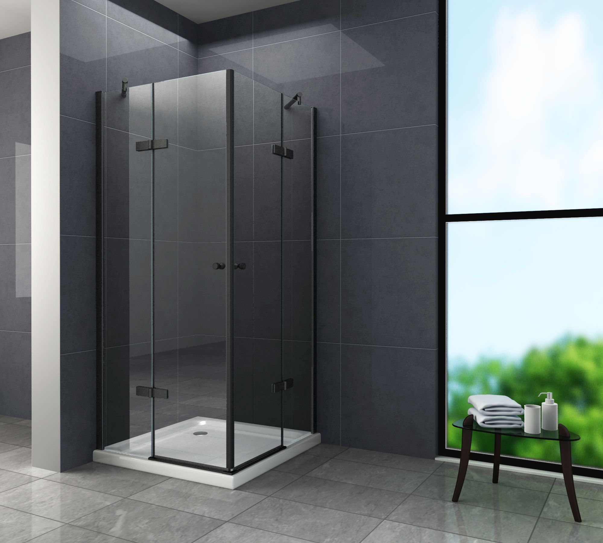 Duschkabine CORNO (schwarz) 100 x 100 x 195 cm ohne Duschtasse
