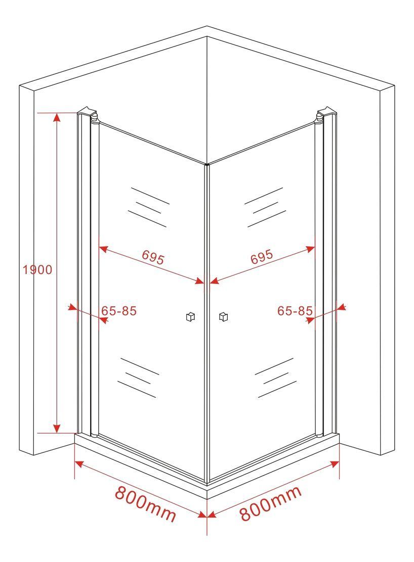 Duschkabine ED-02 80 x 80 x 190 cm ohne Duschtasse