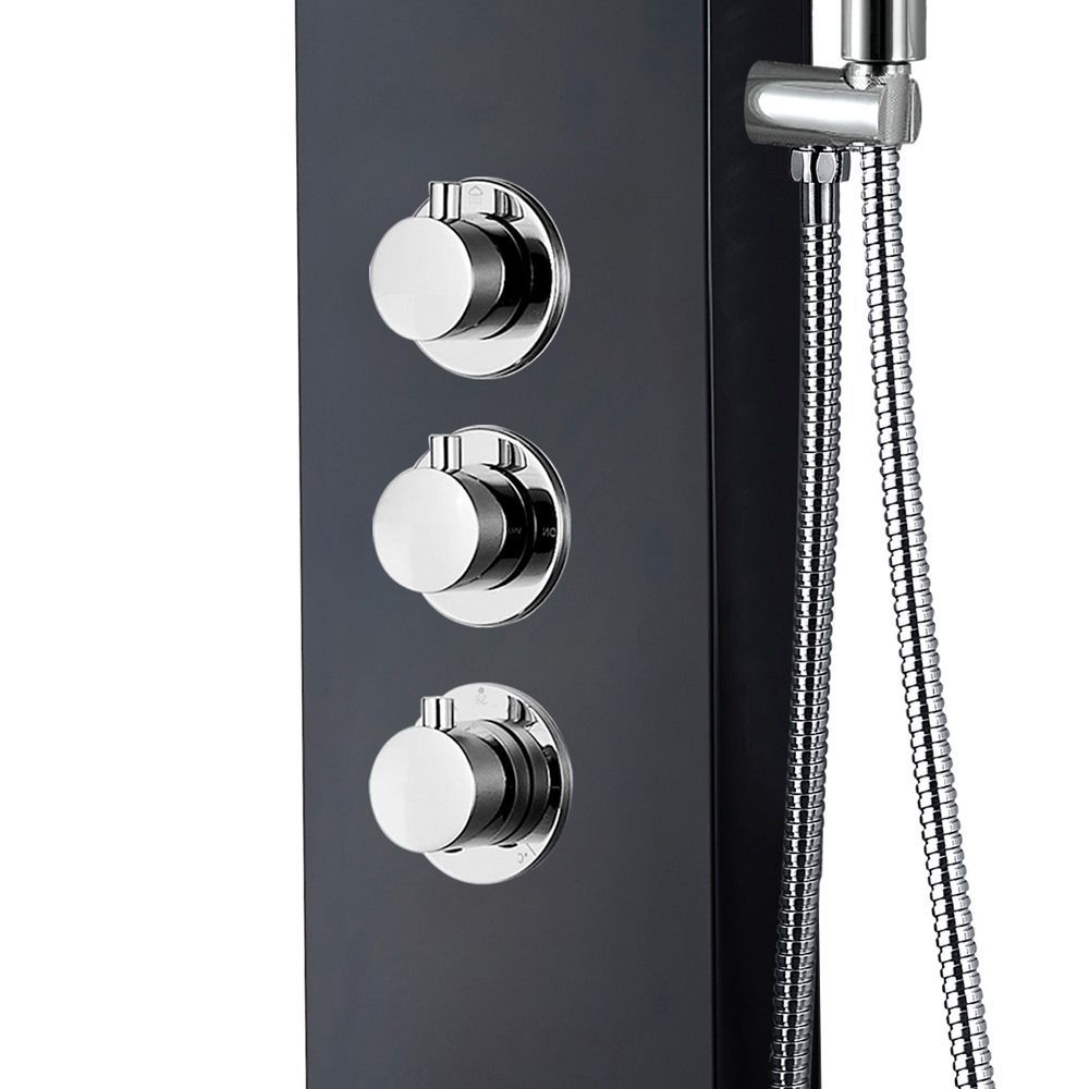Duschpaneel Duschsäule 5 Funktionen mit Thermostatventil schwarz 160x20x6,5 cm