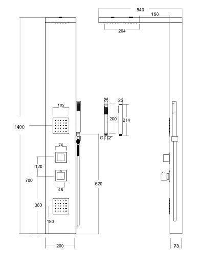 Duschpaneel Edelstahl BASTI Massage Wasserfall Thermostatisch in Bambus, Schwarz
