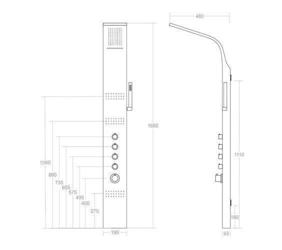 Duschpaneel Edelstahl Kaskada Massage Wasserfall mit Kopfbrause in Grau Massagedusche