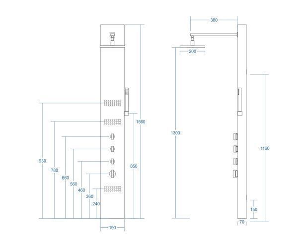 Duschpaneel Edelstahl NEO Massage Wasserfall mit Kopfbrause in Stahl, Massagedusche