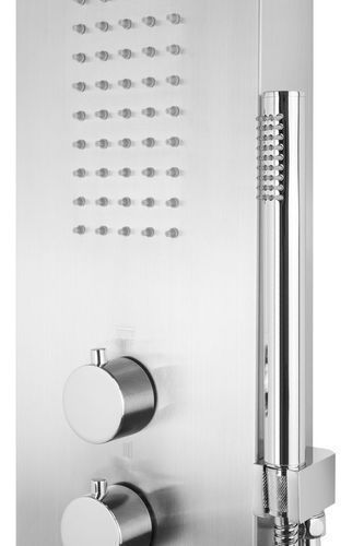 Duschpaneel Edelstahl Samsara Massage Wasserfall Thermostatisch Silber Massagedusche