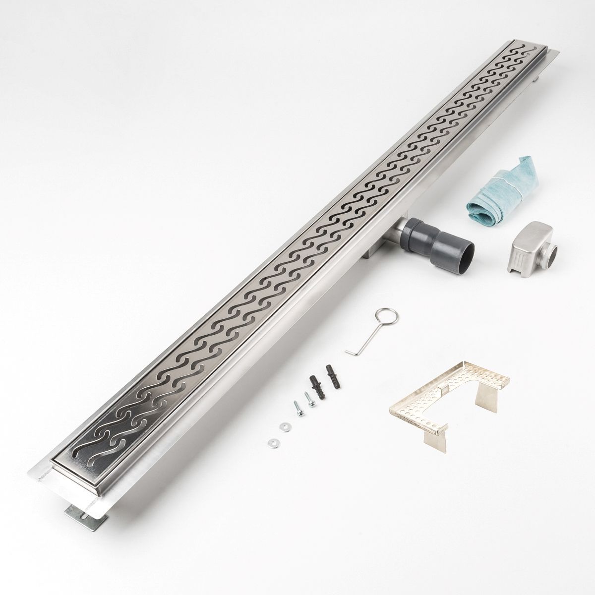Duschrinne Doppelwelle Wellen 1200x70mm Ablaufrinne Edelstahl Siphon Haarsieb