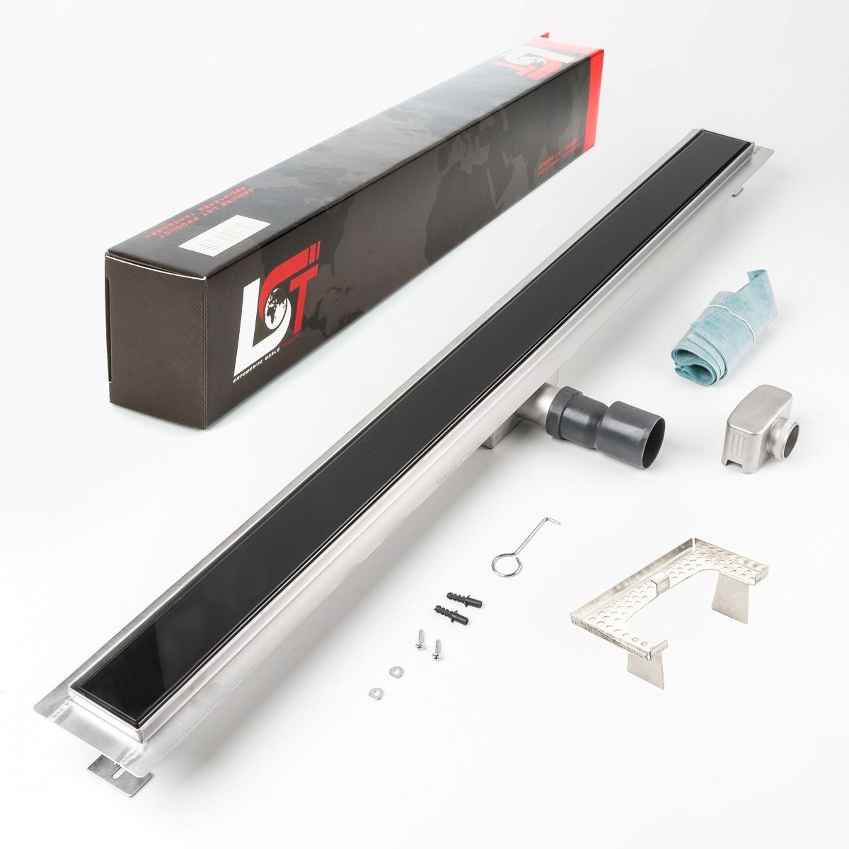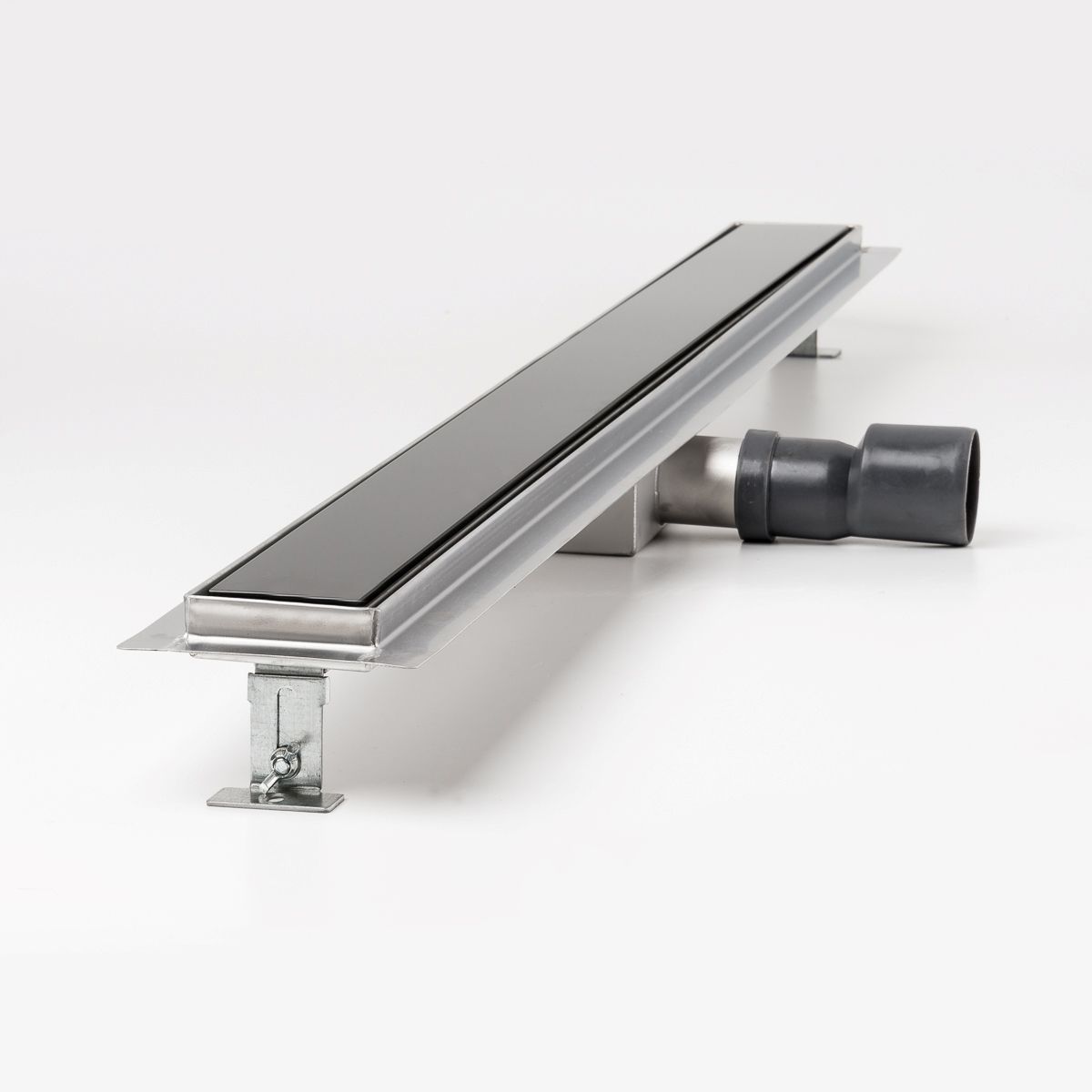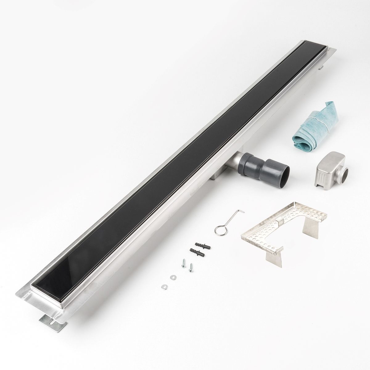 Duschrinne Glas schwarz 1000x70mm Ablaufrinne mit Edelstahl Siphon Haarsieb