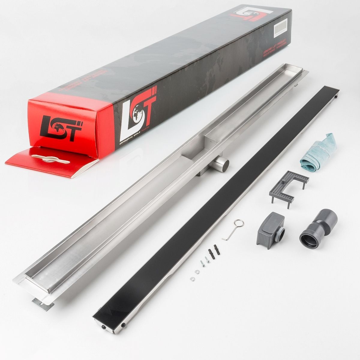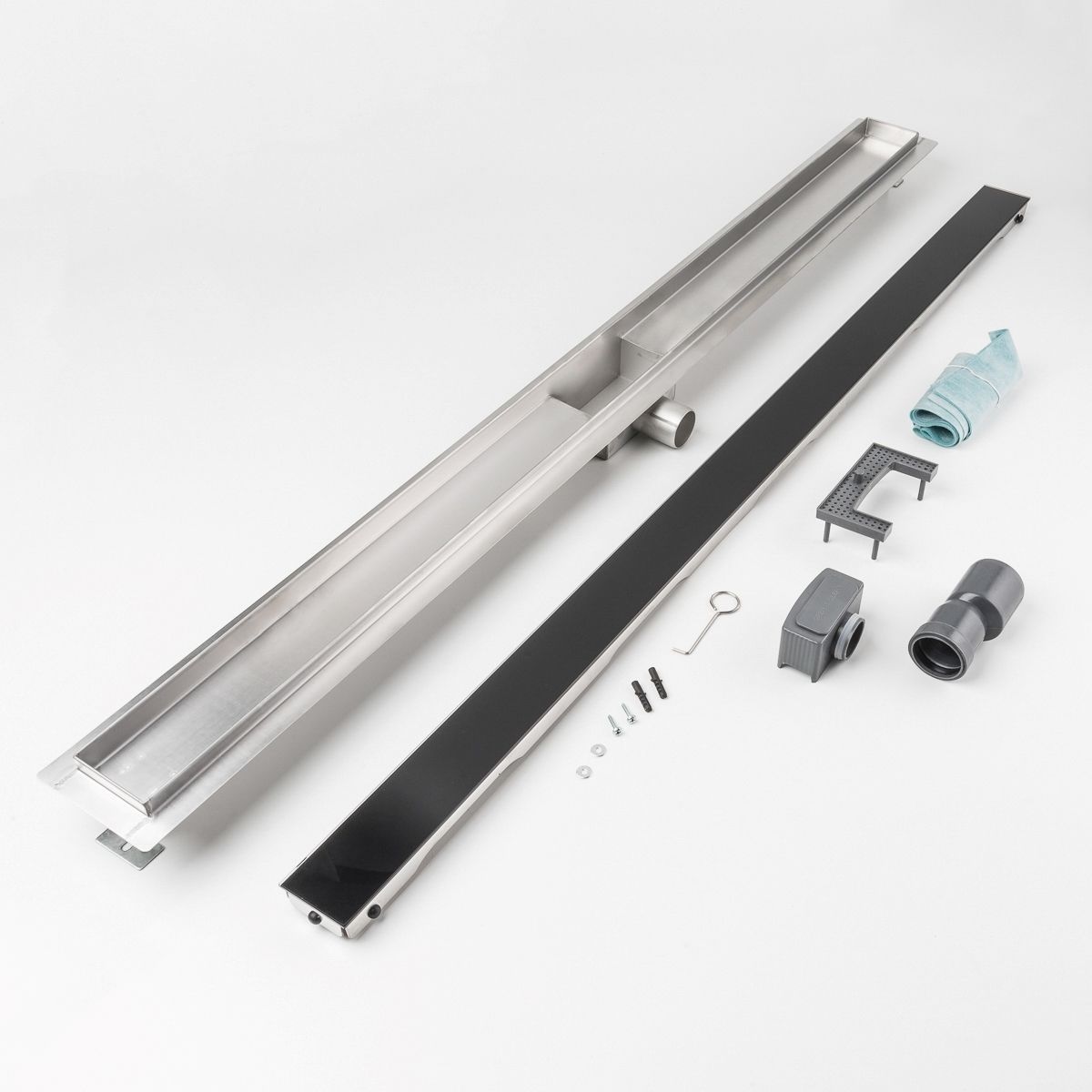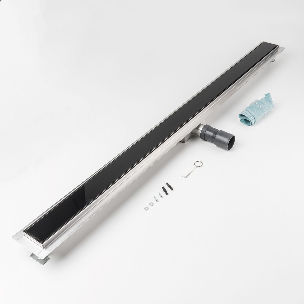 Duschrinne Glas schwarz 1200 x 70 mm höhenverstellbar Bodenablauf Duschrost