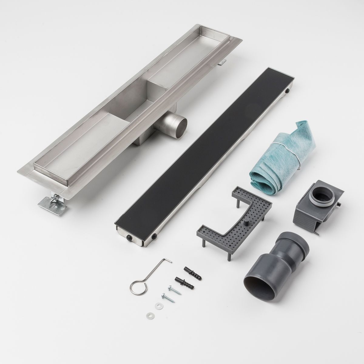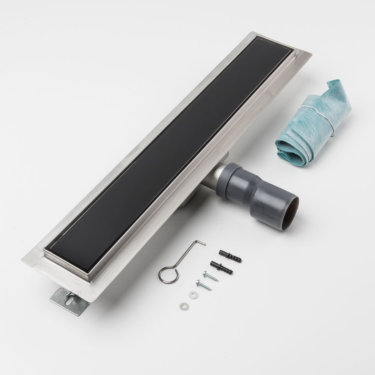 Duschrinne Glas schwarz 500 x 70 mm höhenverstellbar Bodenablauf Duschrost