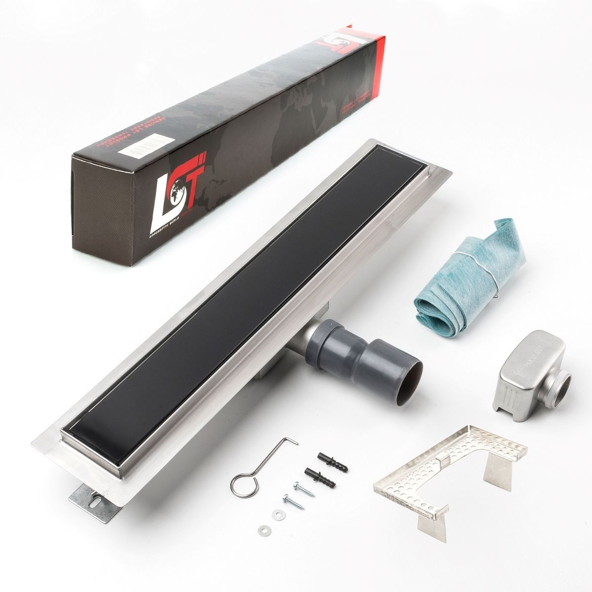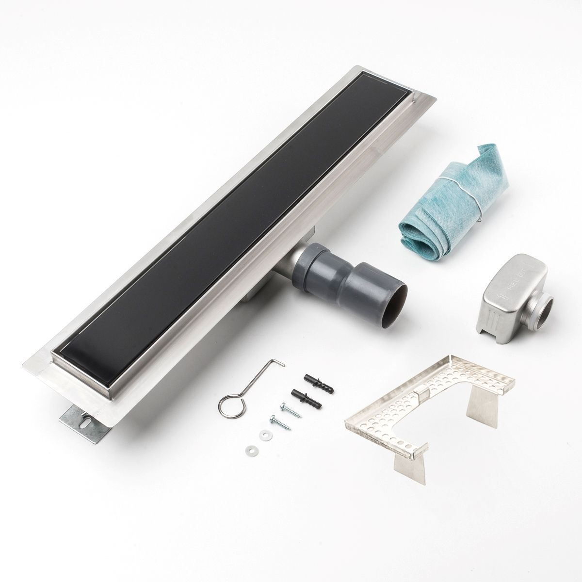 Duschrinne Glas schwarz 500x70mm Ablaufrinne mit Edelstahl Siphon Haarsieb