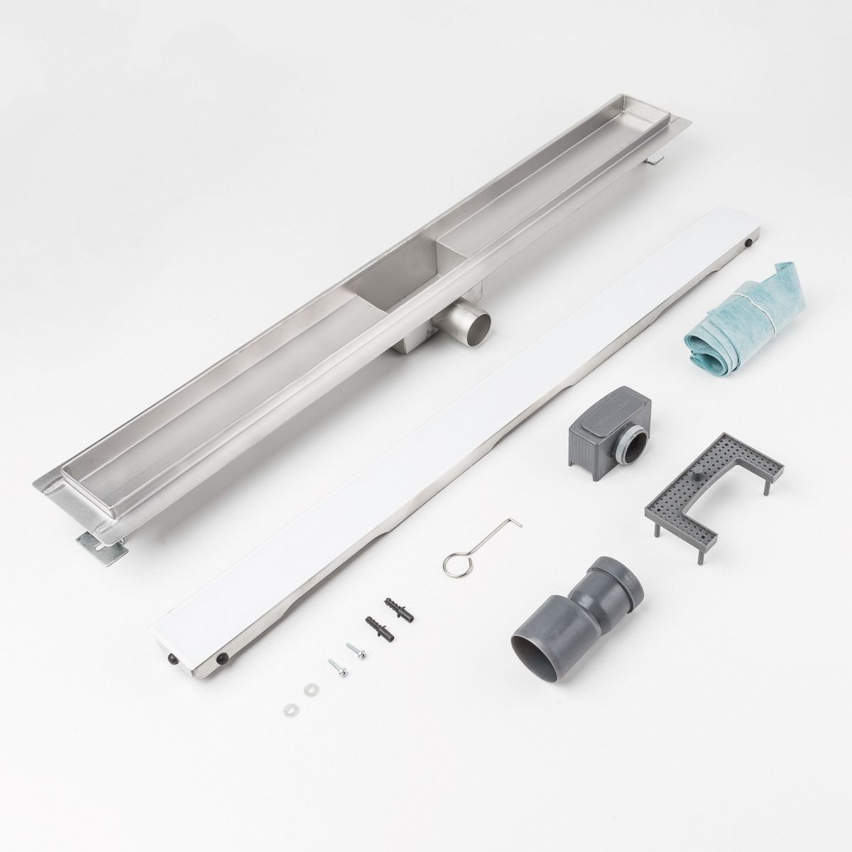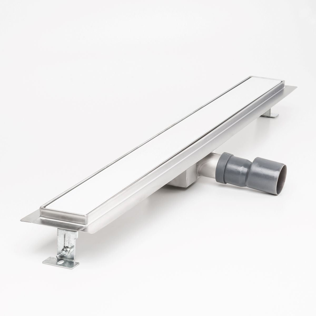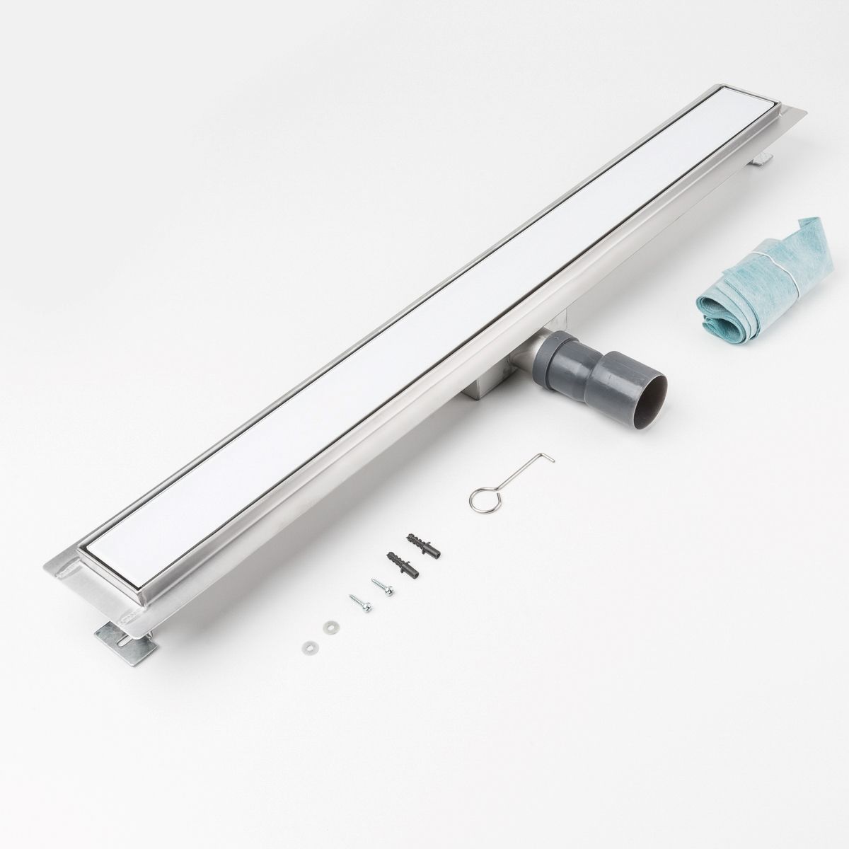 Duschrinne Glas weiß 800 x 70 mm höhenverstellbar Bodenablauf Duschrost Gitter