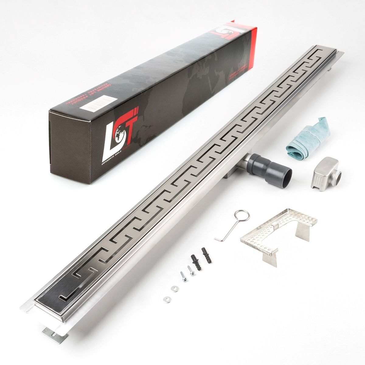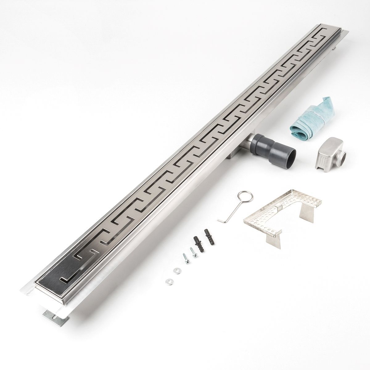 Duschrinne griechisch Bogen 1200x70mm Ablaufrinne mit Edelstahl Siphon Haarsieb