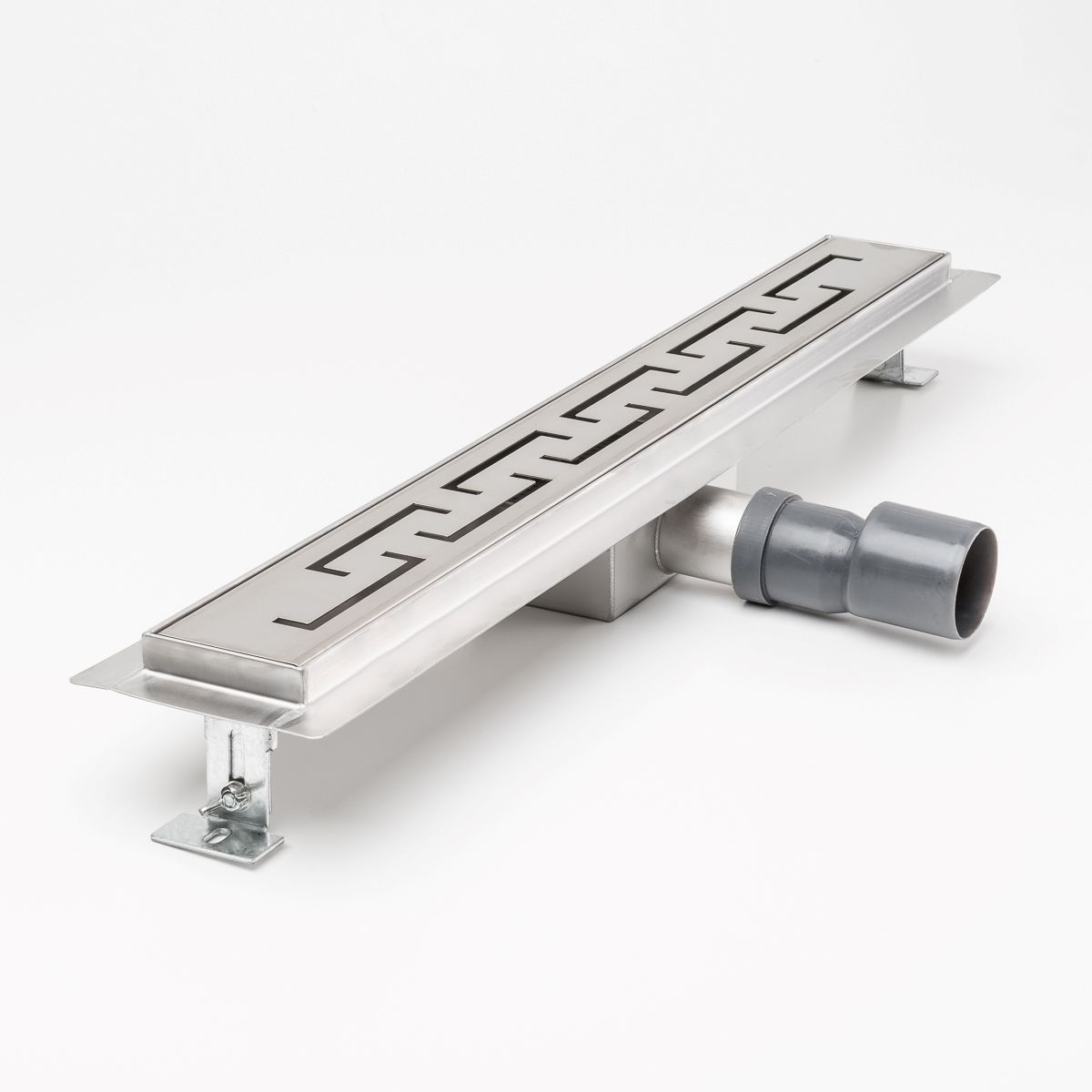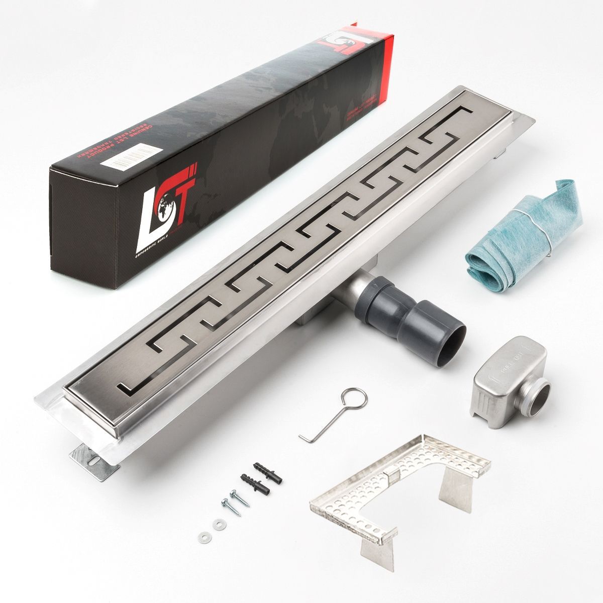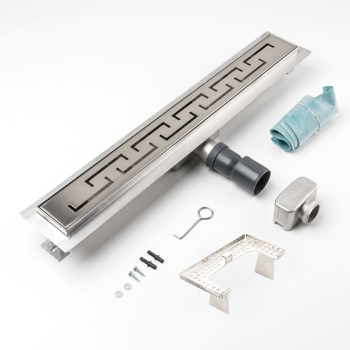 Duschrinne griechisch Bogen 600x70mm Ablaufrinne mit Edelstahl Siphon Haarsieb