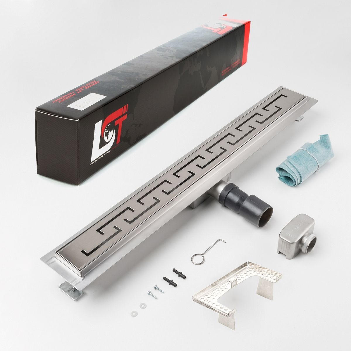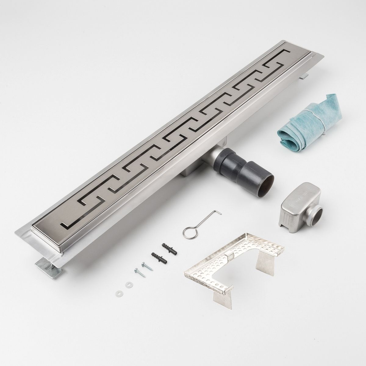 Duschrinne griechisch Bogen 700x70mm Ablaufrinne mit Edelstahl Siphon Haarsieb