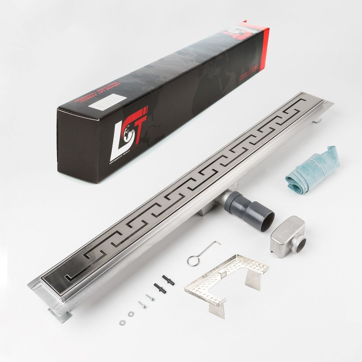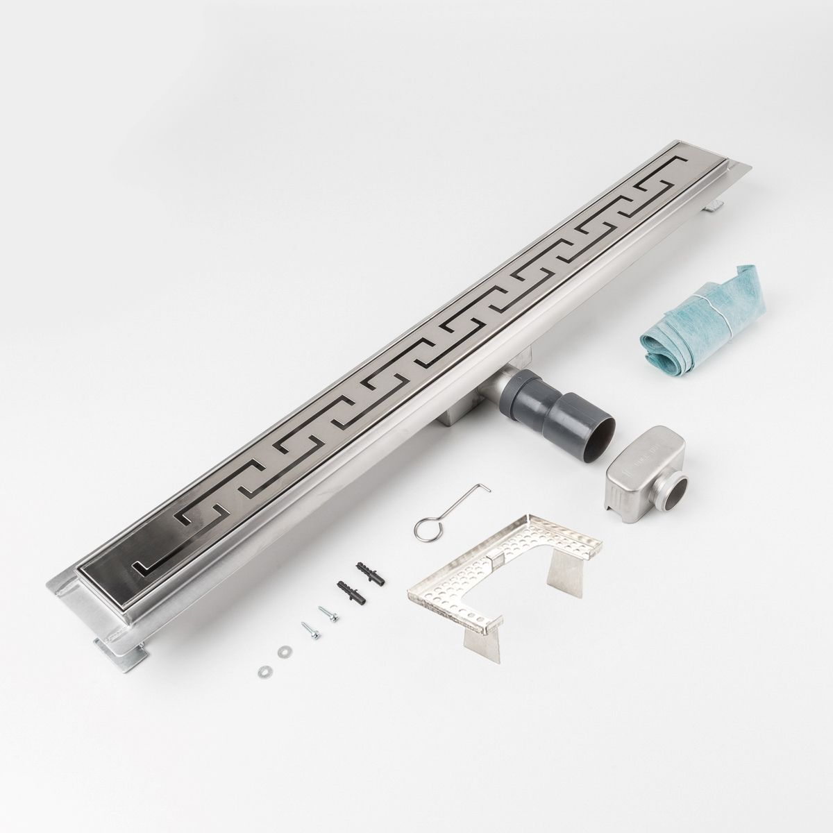Duschrinne griechisch Bogen 800x70mm Ablaufrinne mit Edelstahl Siphon Haarsieb