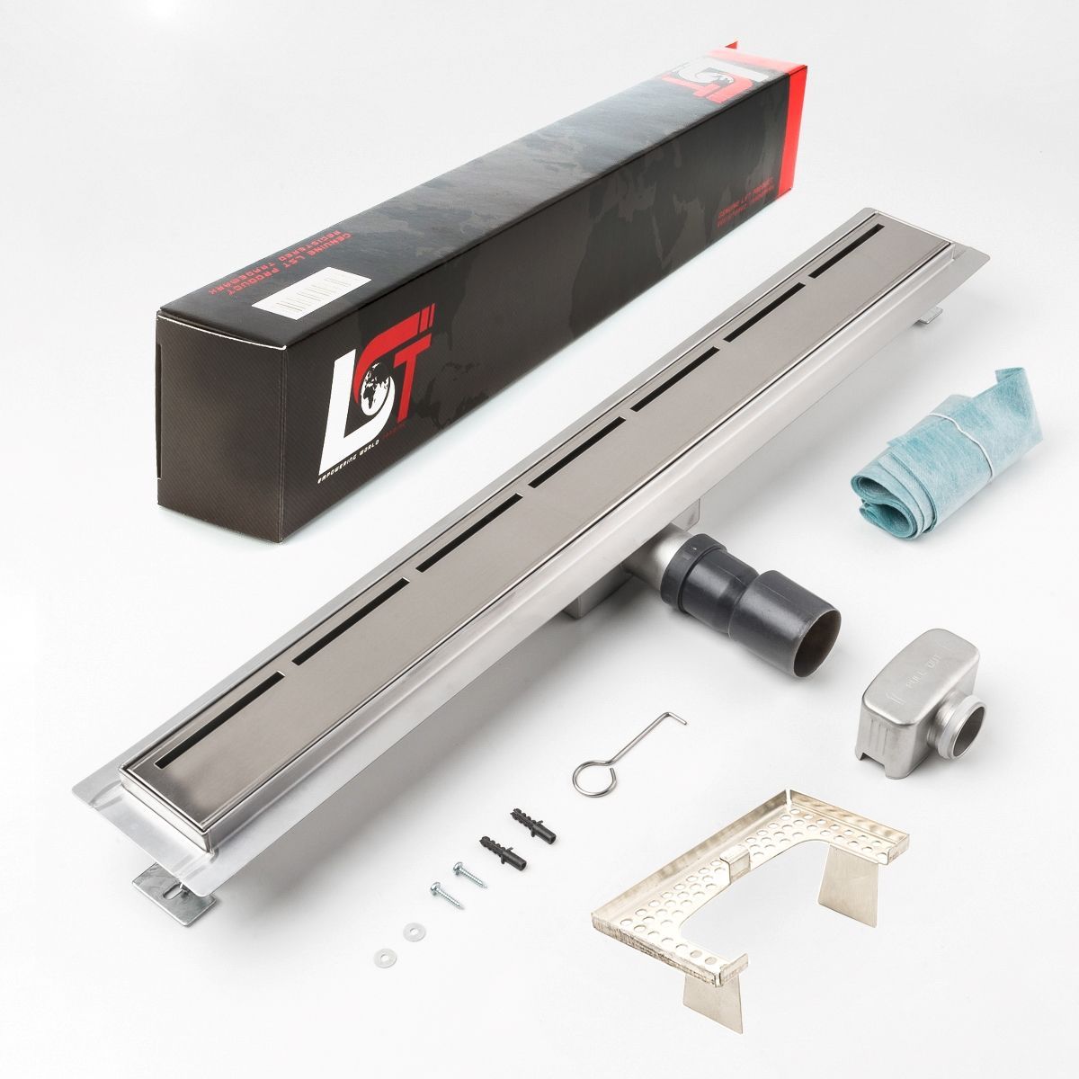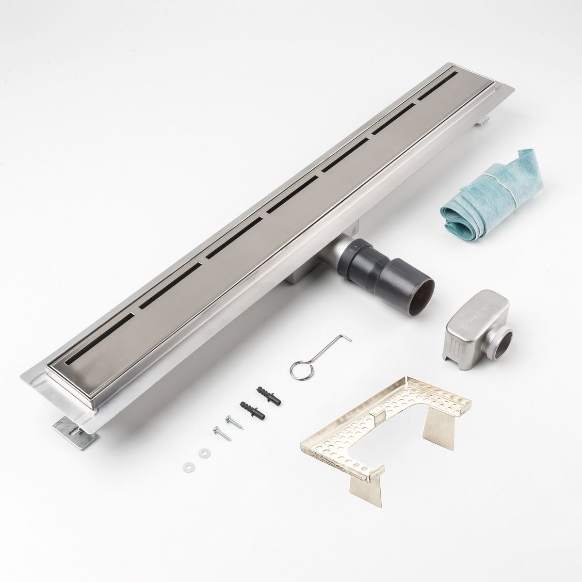 Duschrinne Linien 700x70mm Ablaufrinne Duschrost mit Edelstahl Siphon Haarsieb