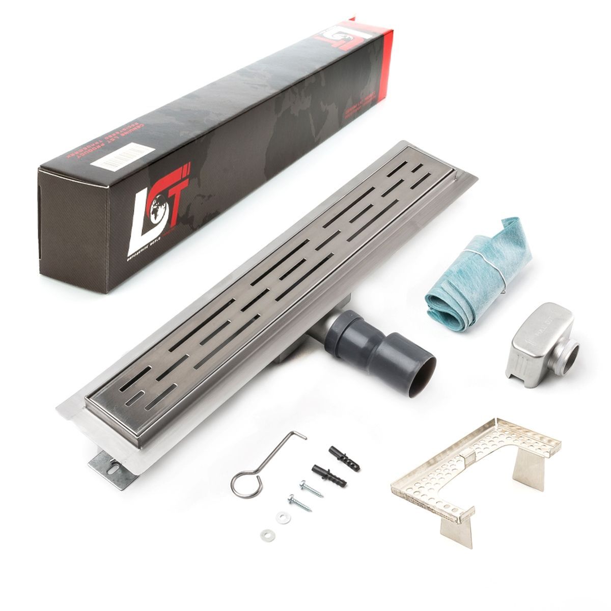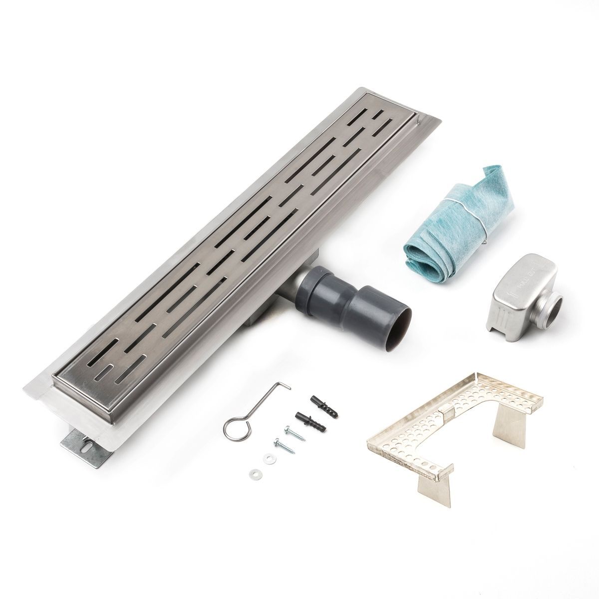 Duschrinne Linien Schlitz 500x70mm Ablaufrinne mit Edelstahl Siphon Haarsieb