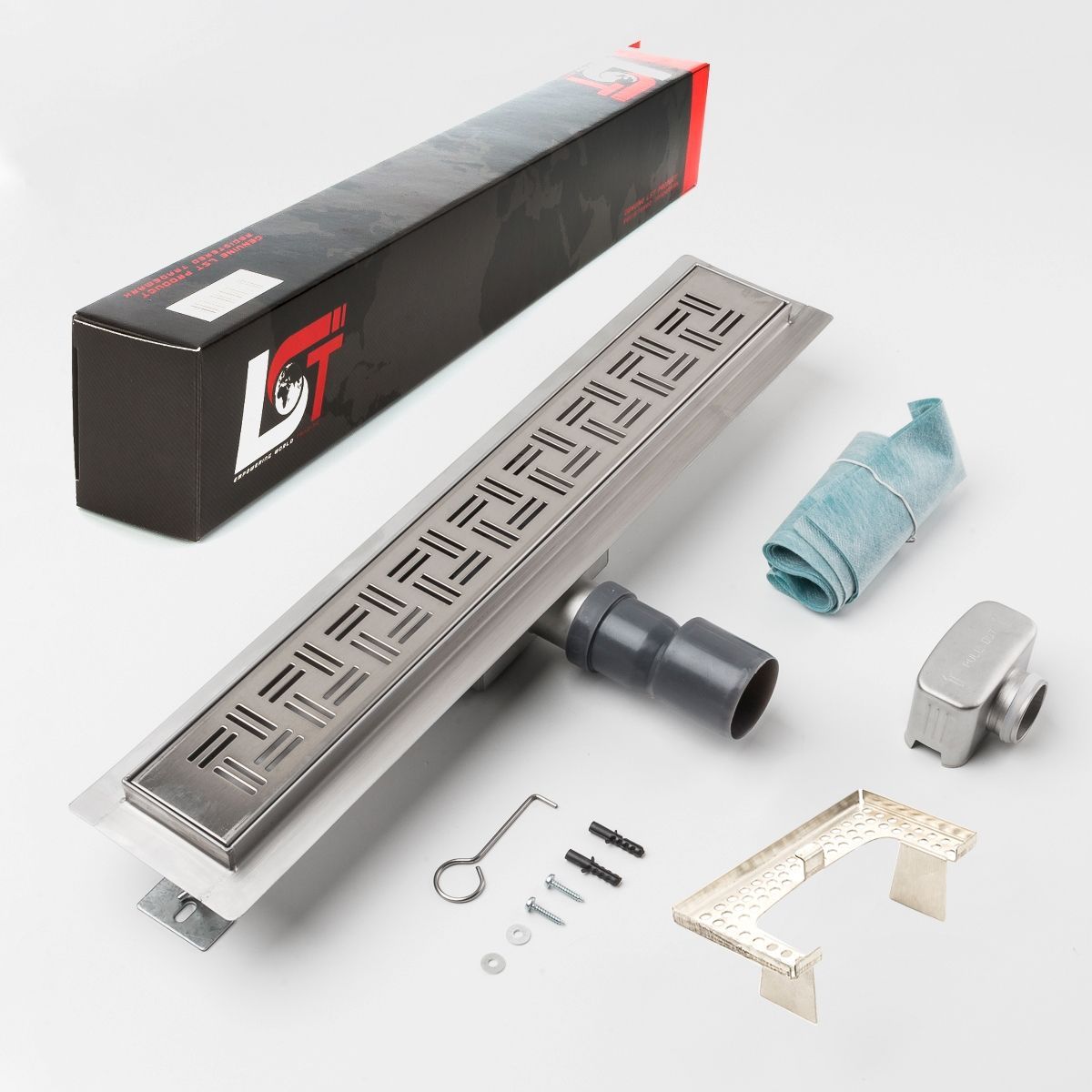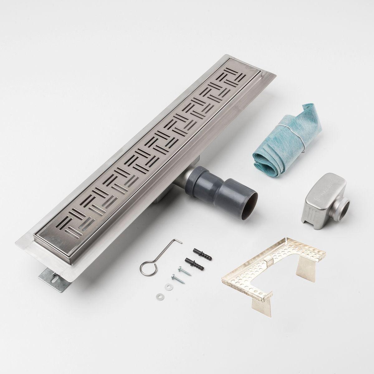 Duschrinne Linien Schlitz 500x70mm Ablaufrinne mit Edelstahl Siphon Haarsieb