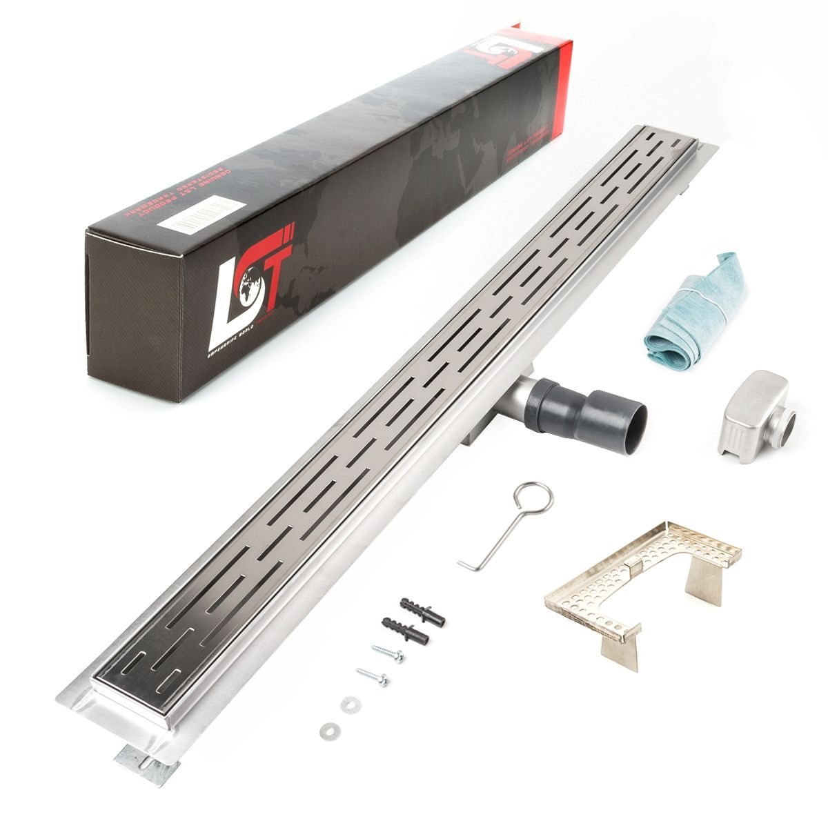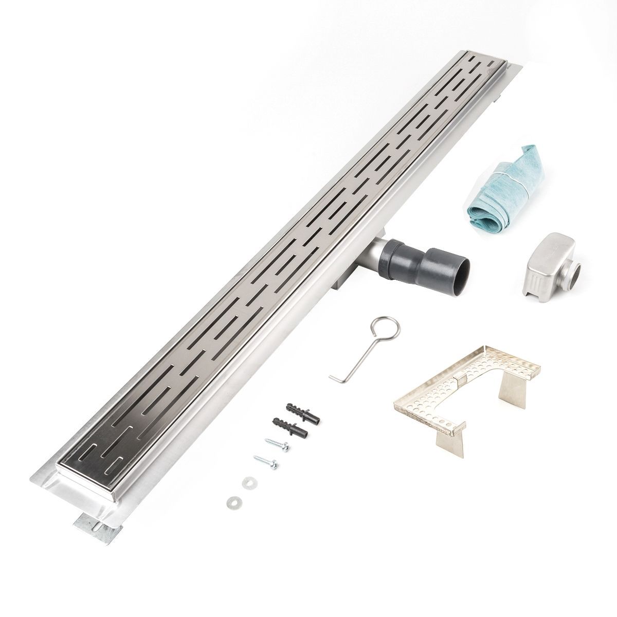 Duschrinne Linien Schlitz 900x70mm Ablaufrinne mit Edelstahl Siphon Haarsieb