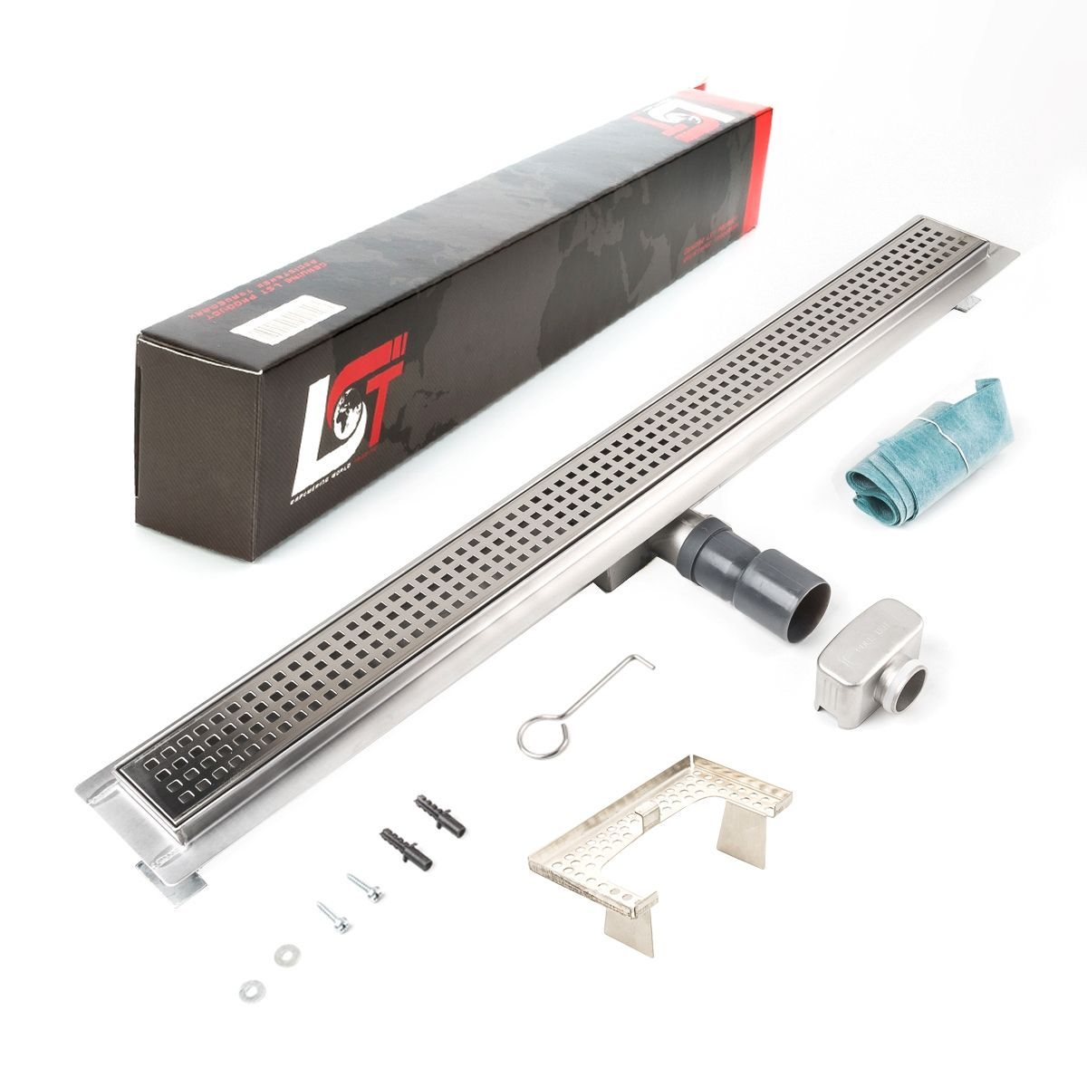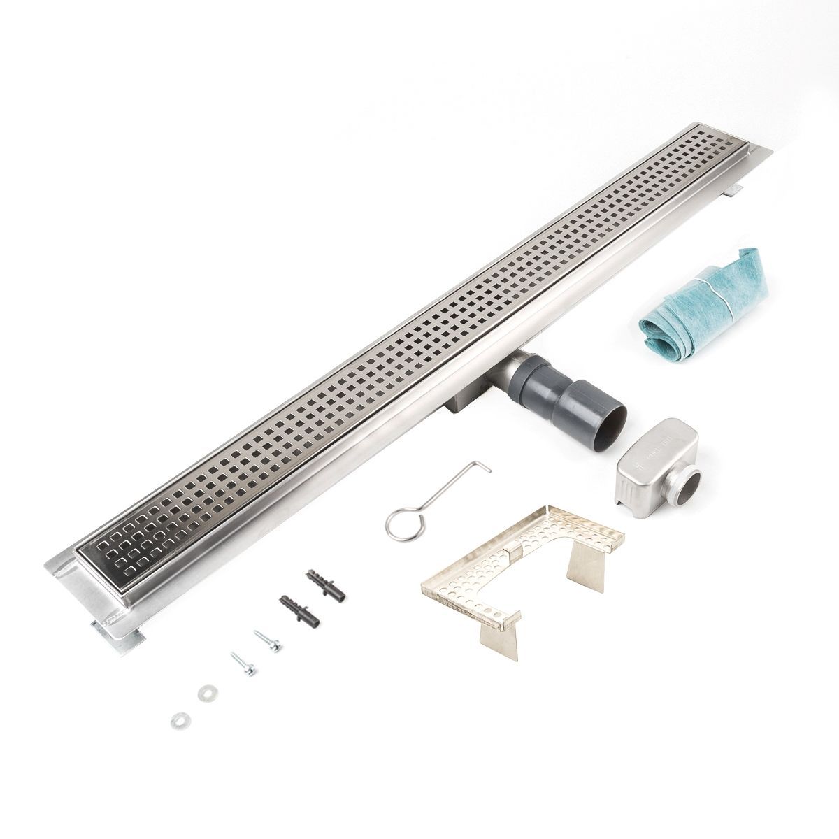 Duschrinne Quadrate 800x70mm Ablaufrinne Duschrost mit Edelstahl Siphon Haarsieb