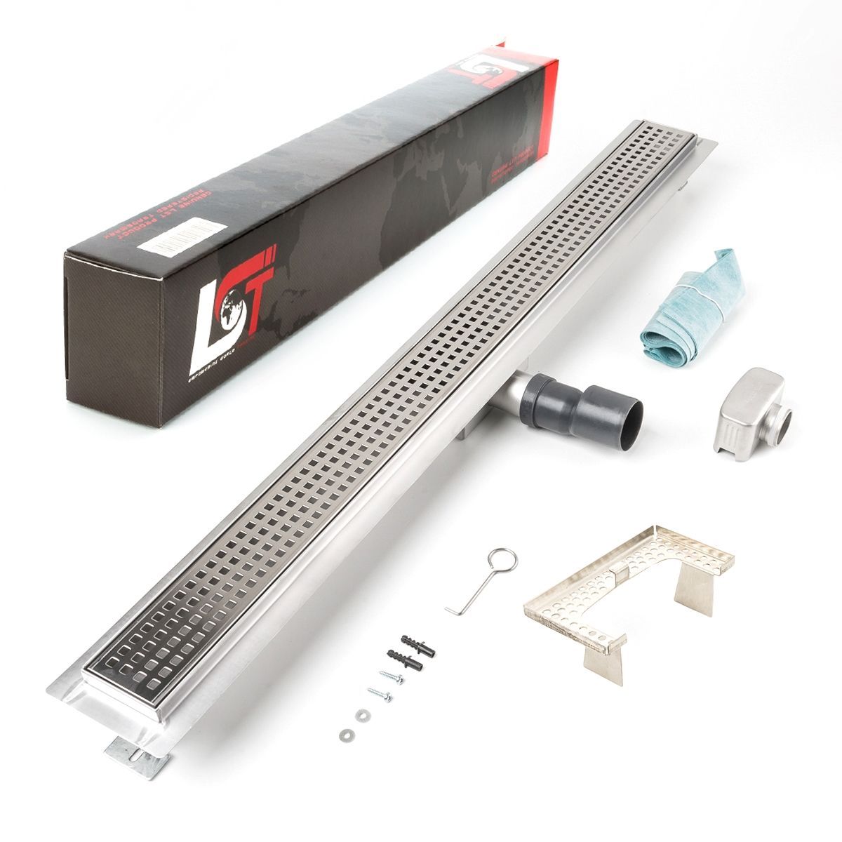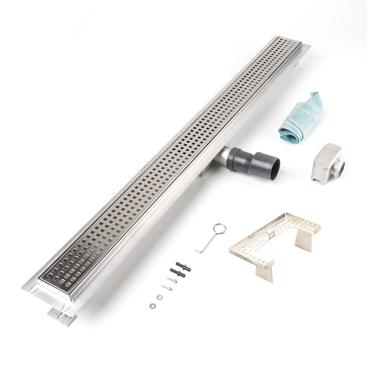 Duschrinne Quadrate 900x70mm Ablaufrinne Duschrost mit Edelstahl Siphon Haarsieb