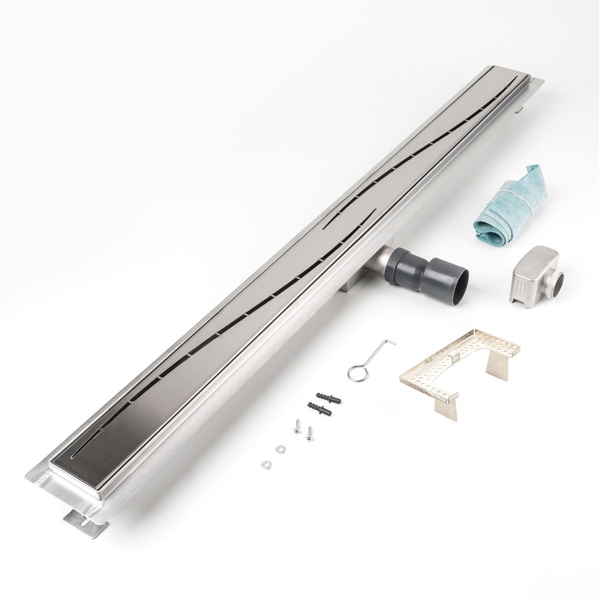 Duschrinne Stromlinie Wellen 1000x70mm Ablaufrinne mit Edelstahl Siphon Haarsieb