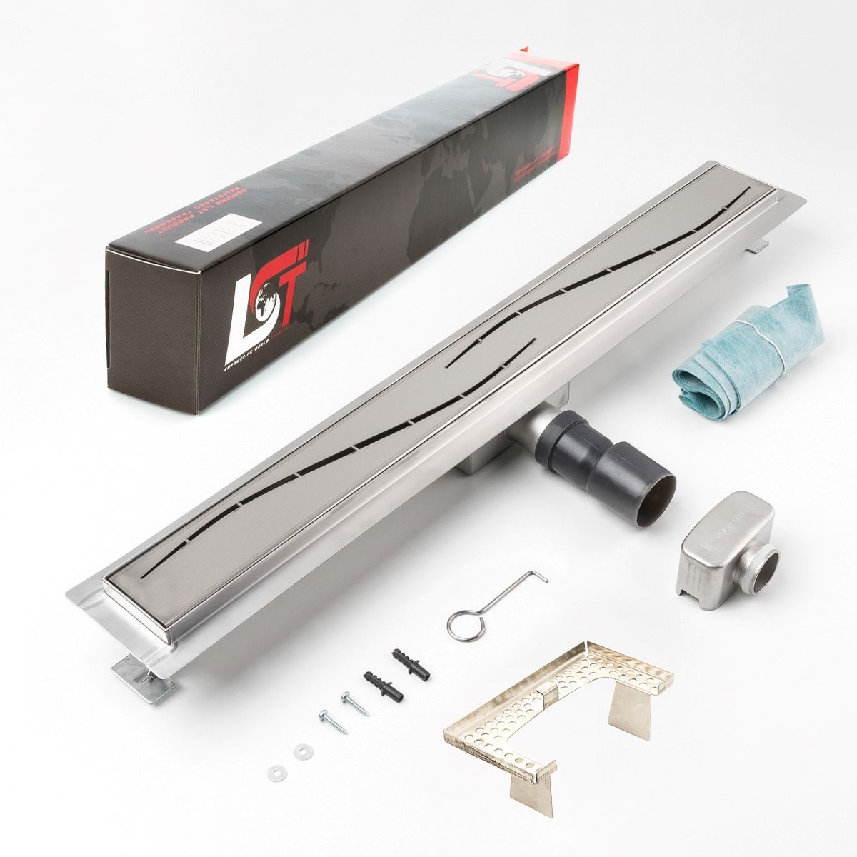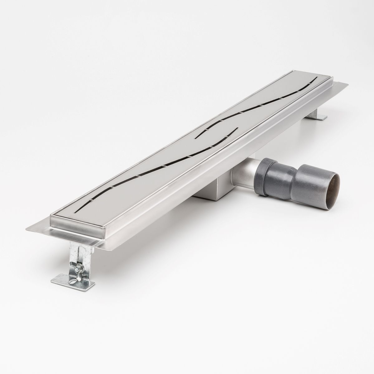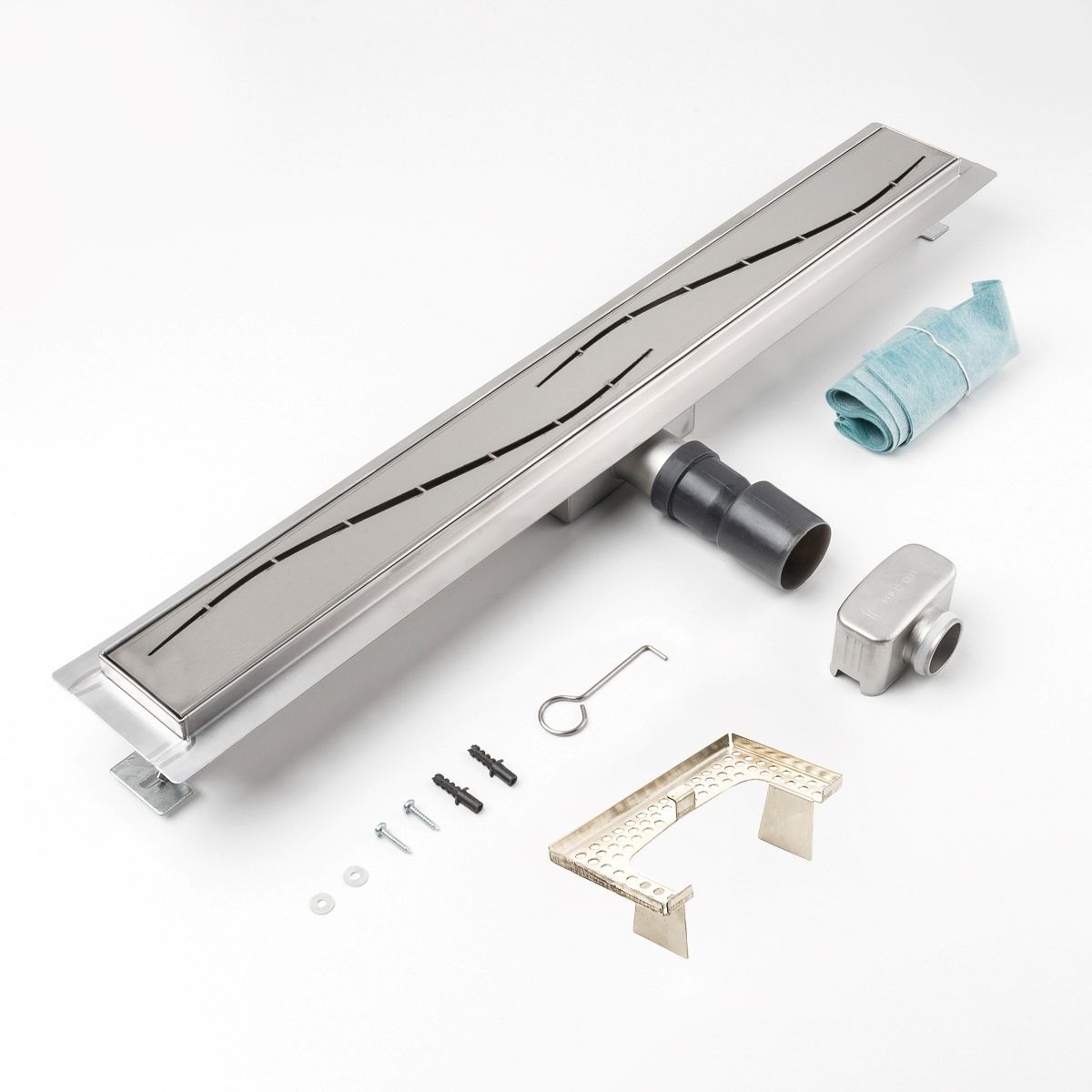 Duschrinne Stromlinie Wellen 700x70mm Ablaufrinne mit Edelstahl Siphon Haarsieb