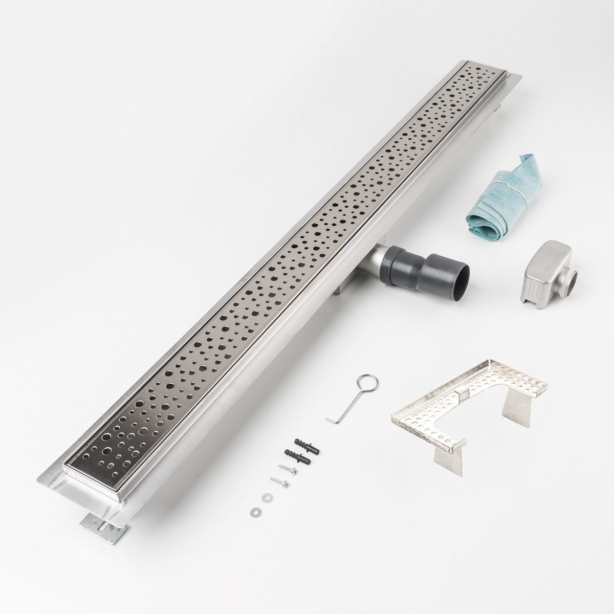 Duschrinne Tropfen 900x70mm Ablaufrinne Duschrost mit Edelstahl Siphon Haarsieb