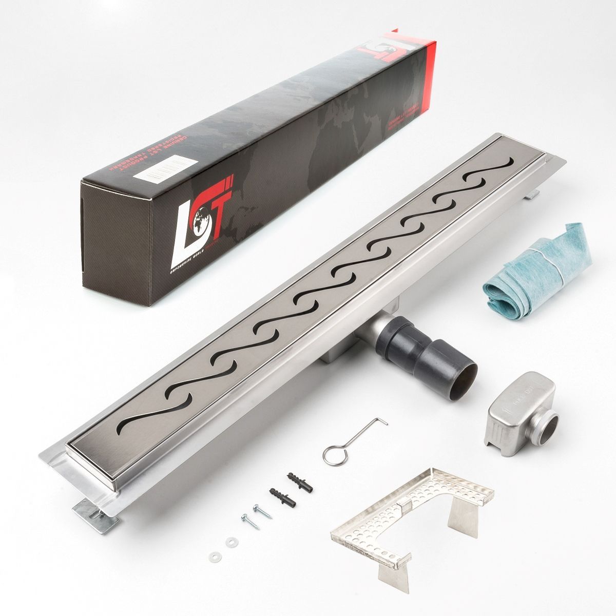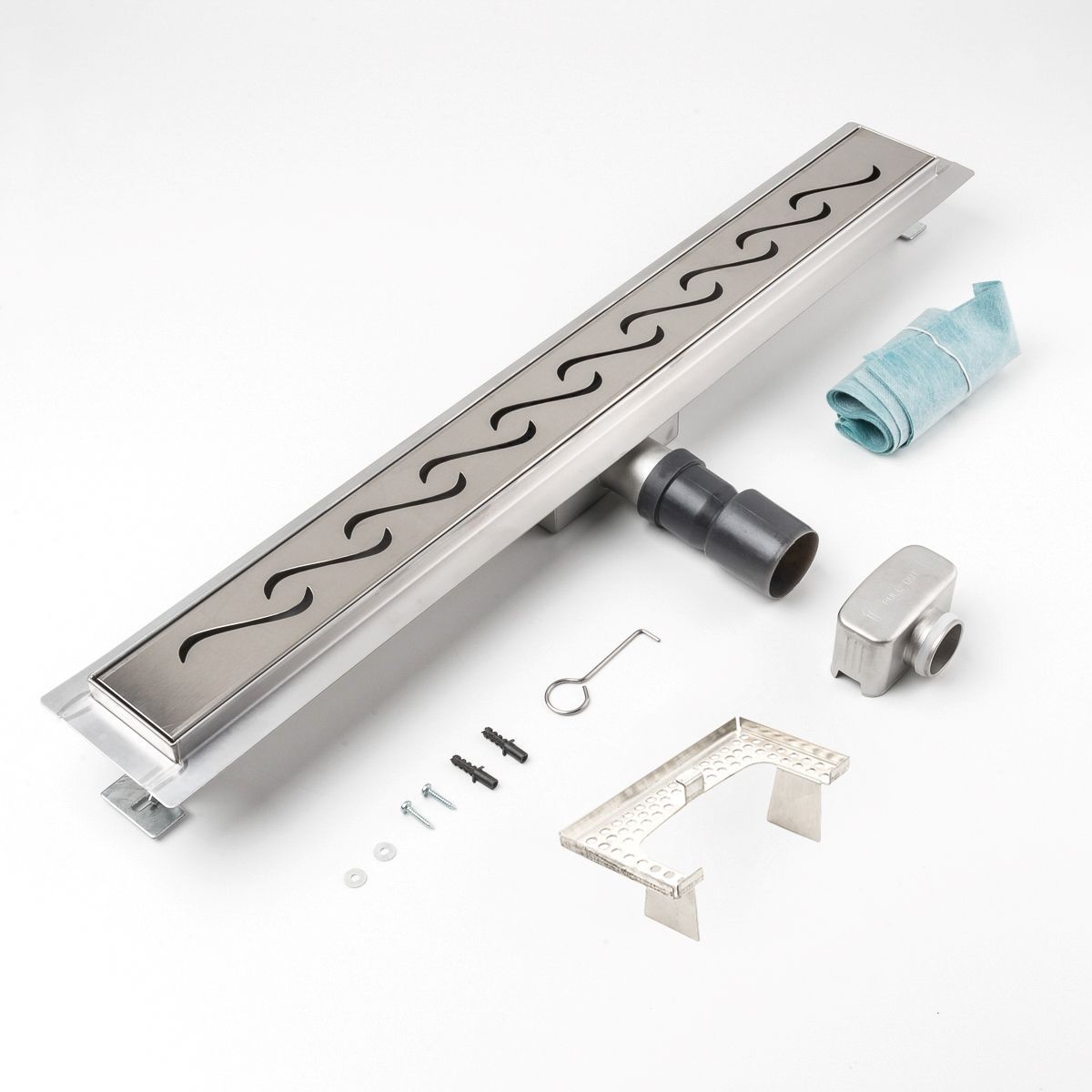 Duschrinne Wellen 700x70mm Ablaufrinne Duschrost mit Edelstahl Siphon Haarsieb