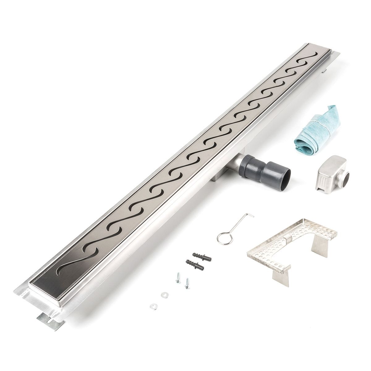 Duschrinne Wellen 700x70mm Ablaufrinne Duschrost mit Edelstahl Siphon Haarsieb