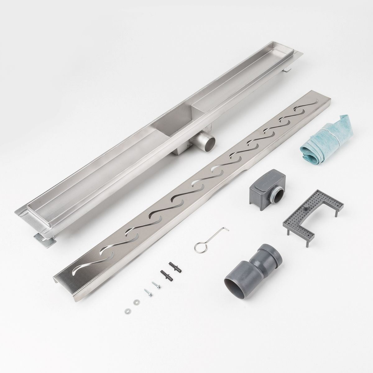 Duschrinne Wellen 800 x 70 mm höhenverstellbar Bodenablauf Duschrost Duschgitter