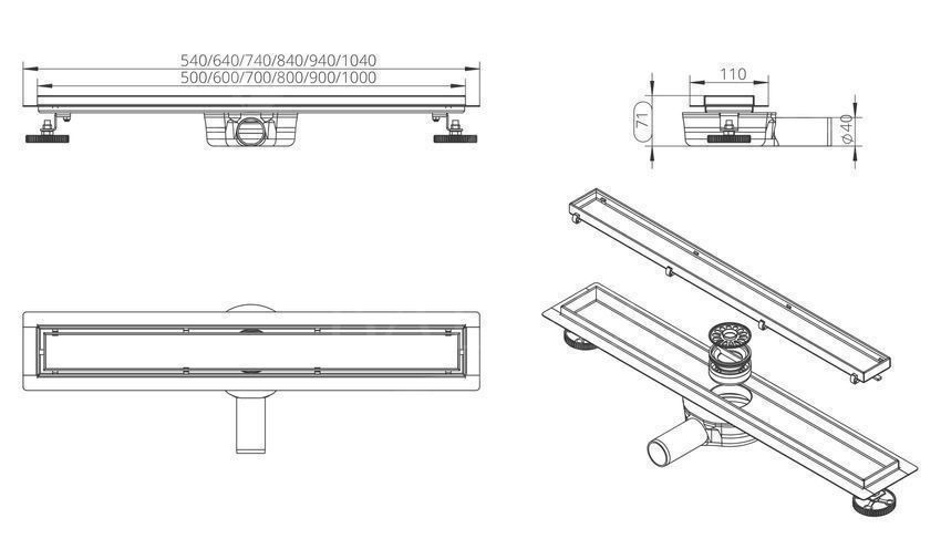 Duschrinnen Edelstahl 360 DRAIN 90 cm in Silber, Abfluss Befliesbar 2in1