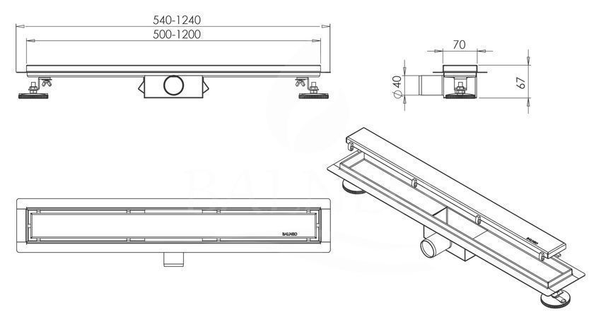 Duschrinnen Edelstahl DUPLEX 110 cm in Silber, Abfluss Befliesbar 2in1