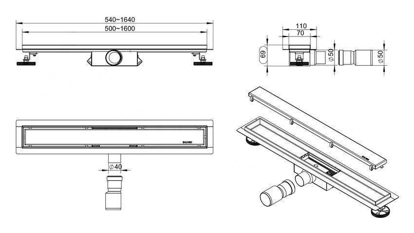 Duschrinnen Edelstahl DUPLEX NEXT 110 cm in Silber, Abfluss Befliesbar 2in1