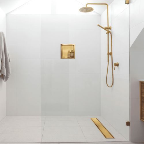 Duschrinnen Edelstahl DUPLEX NEXT 90 cm in Gold, Abfluss Befliesbar 2in1
