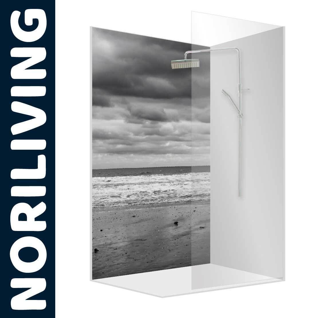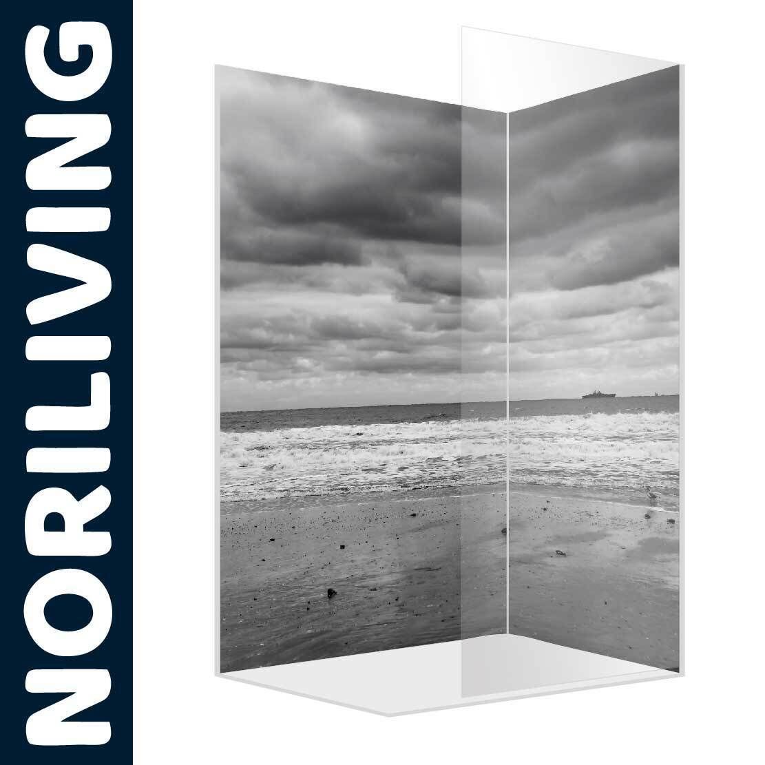 Duschrückwand Alu Ecklösung Wandverkleidung Dusche Strand schwarz weiß 713