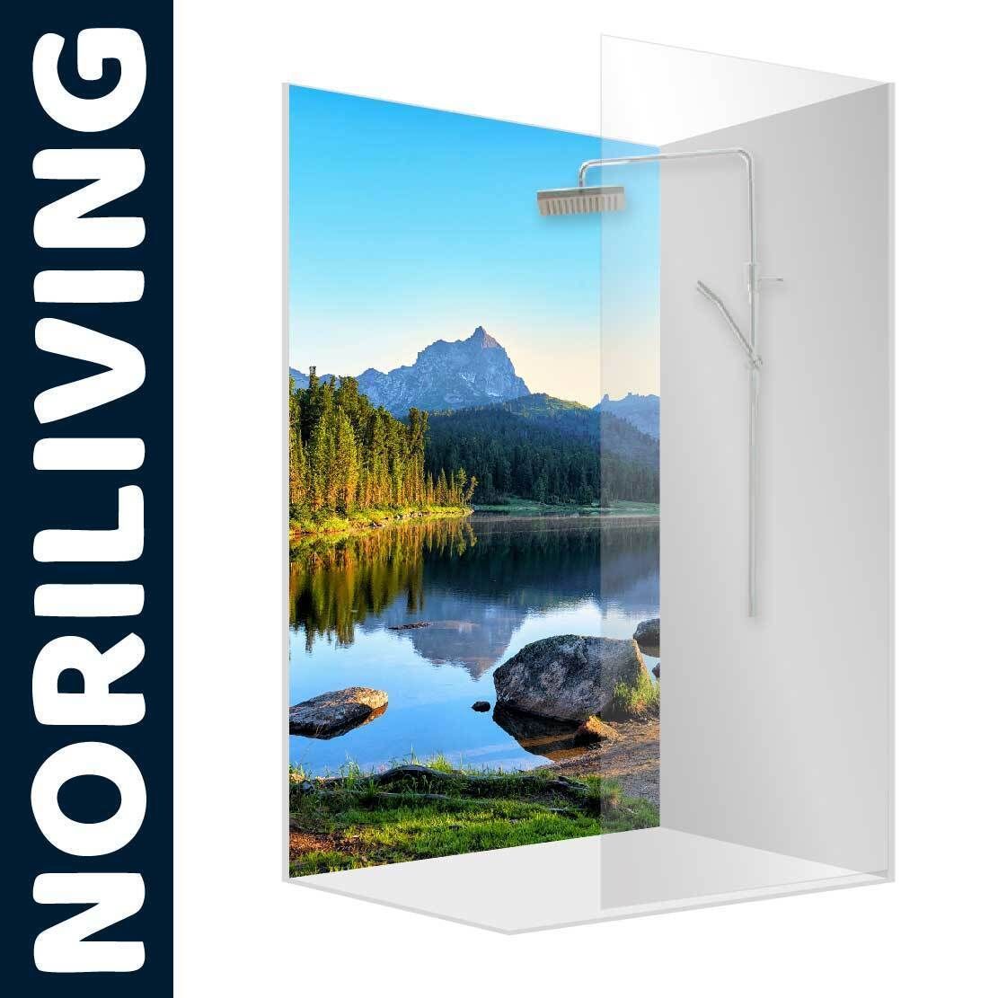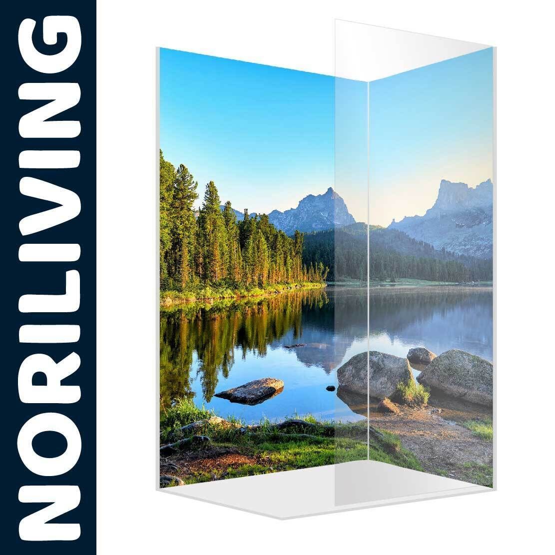 Duschrückwand Duschrückwände Ecklösung Alu Wandverkleidung Bergsee mit Wald 453