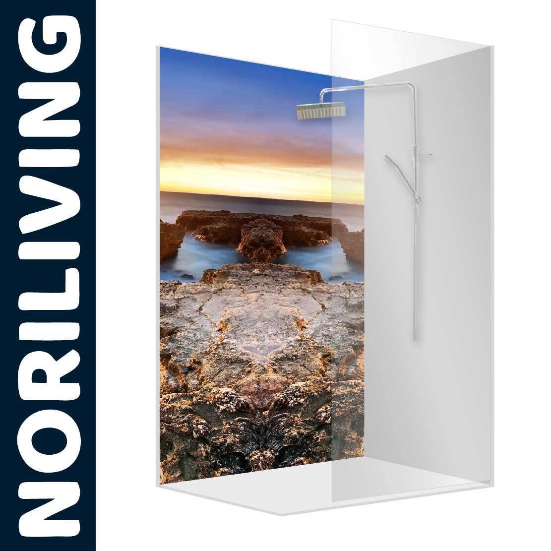 Duschrückwand Duschrückwände Ecklösung Alu Wandverkleidung Blick aufs Meer 470