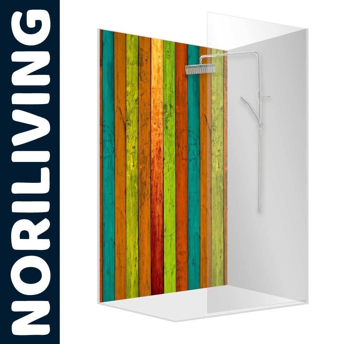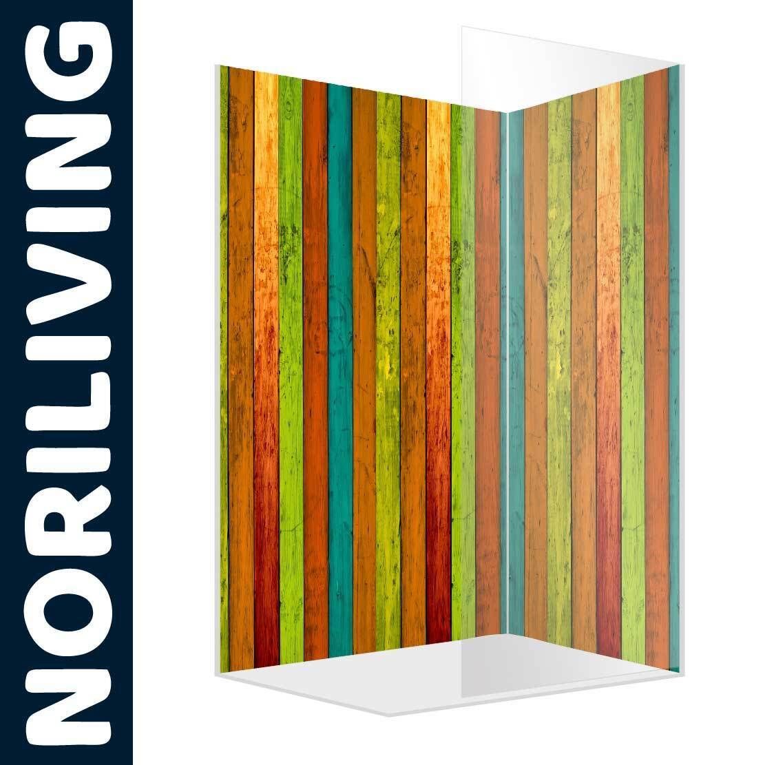 Duschrückwand Duschrückwände Ecklösung Alu Wandverkleidung bunter Holzzaun 169