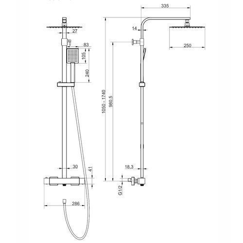Duschsäule ANGO Duschsystem, Brausegarnitur in Chrom, Thermostatisch, Regendusche