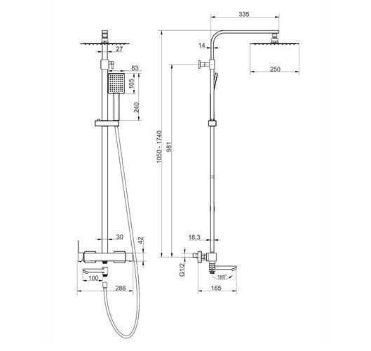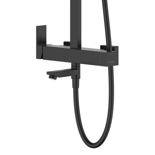Duschsäule ANGO Duschsystem, Brausegarnitur mit Auslauf in Schwarz, Duschgarnitur