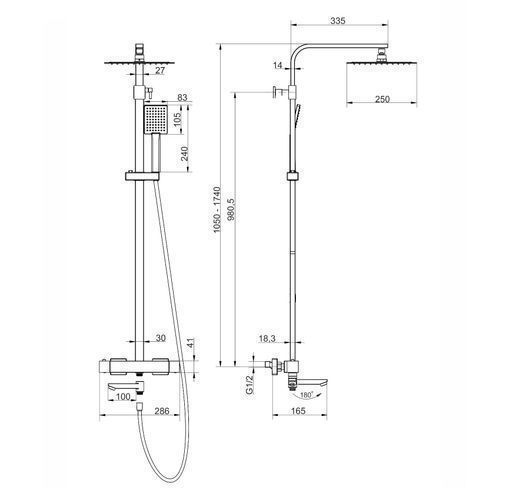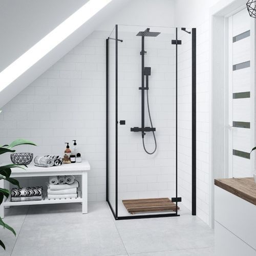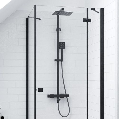 Duschsäule ANGO Duschsystem, Brausegarnitur mit Auslauf in Schwarz, Thermostatisch