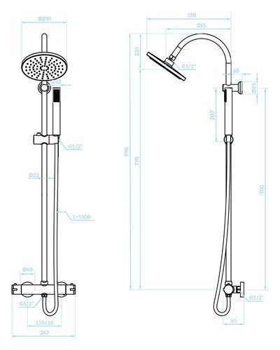 Duschsäule CARAC Thermostatisch Duschsystem, Brausegarnitur in Chrom Dusch-Set