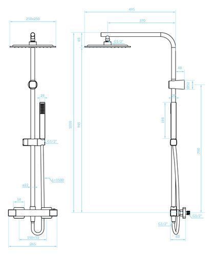 Duschsäule CUBI Thermostatisch Duschsystem, Brausegarnitur in Schwarz Dusch-Set
